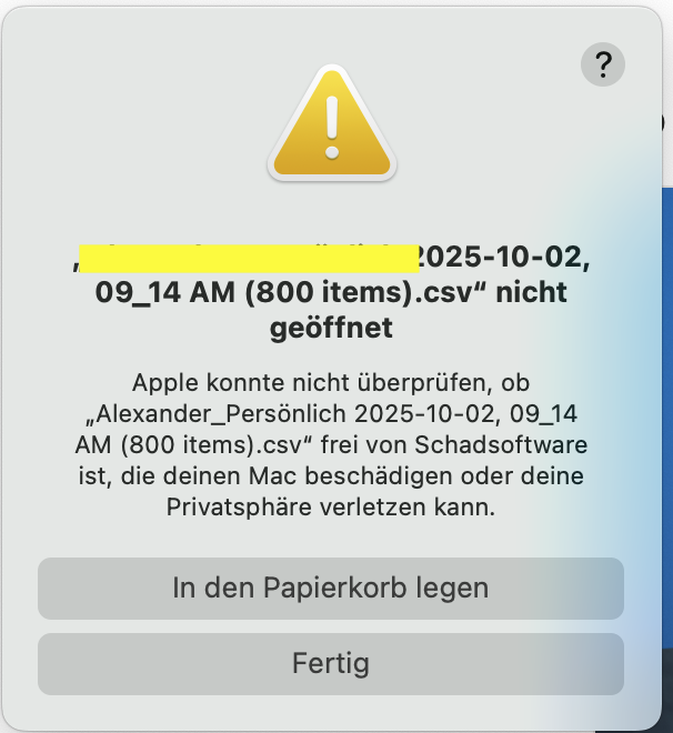 ich habe aus 1Password eine CSV Datei erzeugt, die ich mit Excel öffnen möchte. es kommt folgende Fehlermeldung: