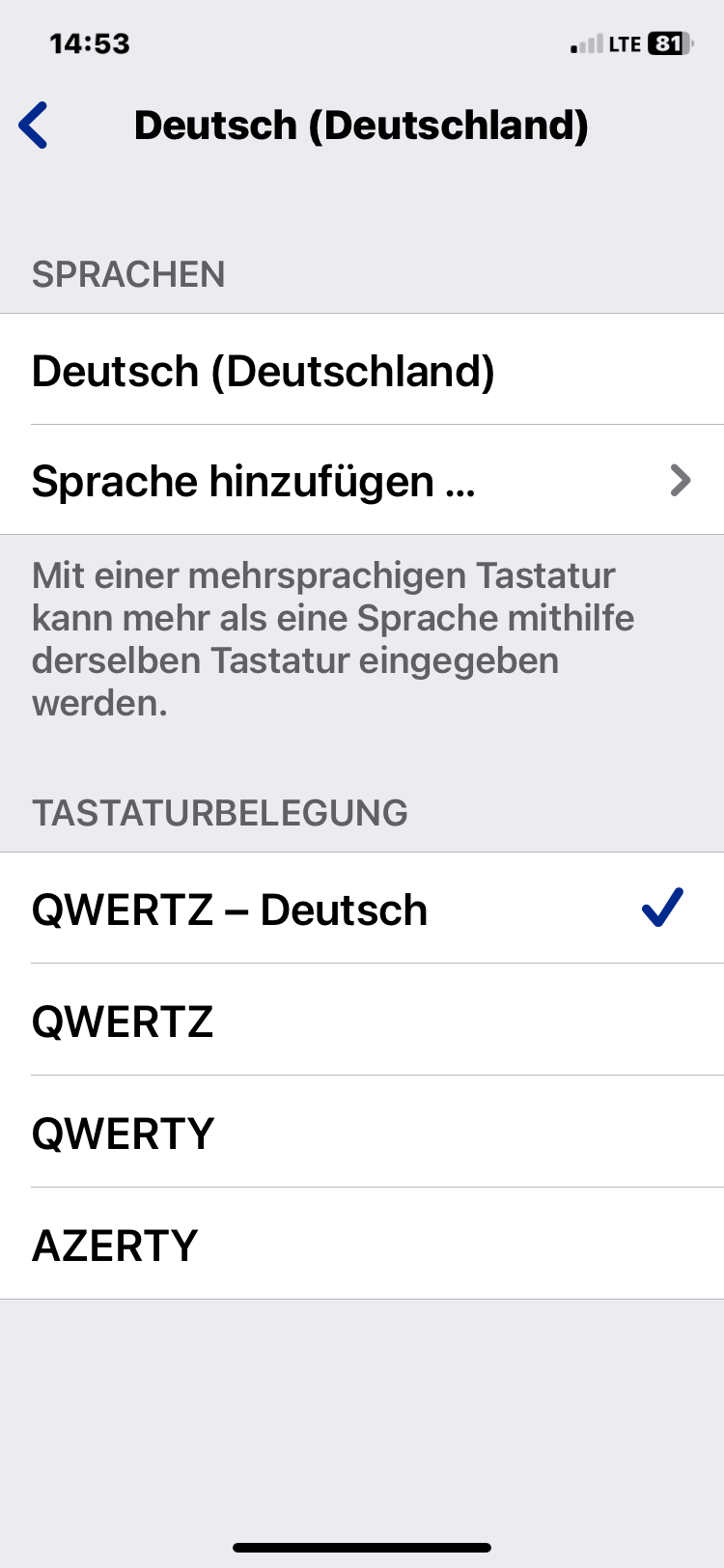 - Einstellungen → Allgemein → Tastatur