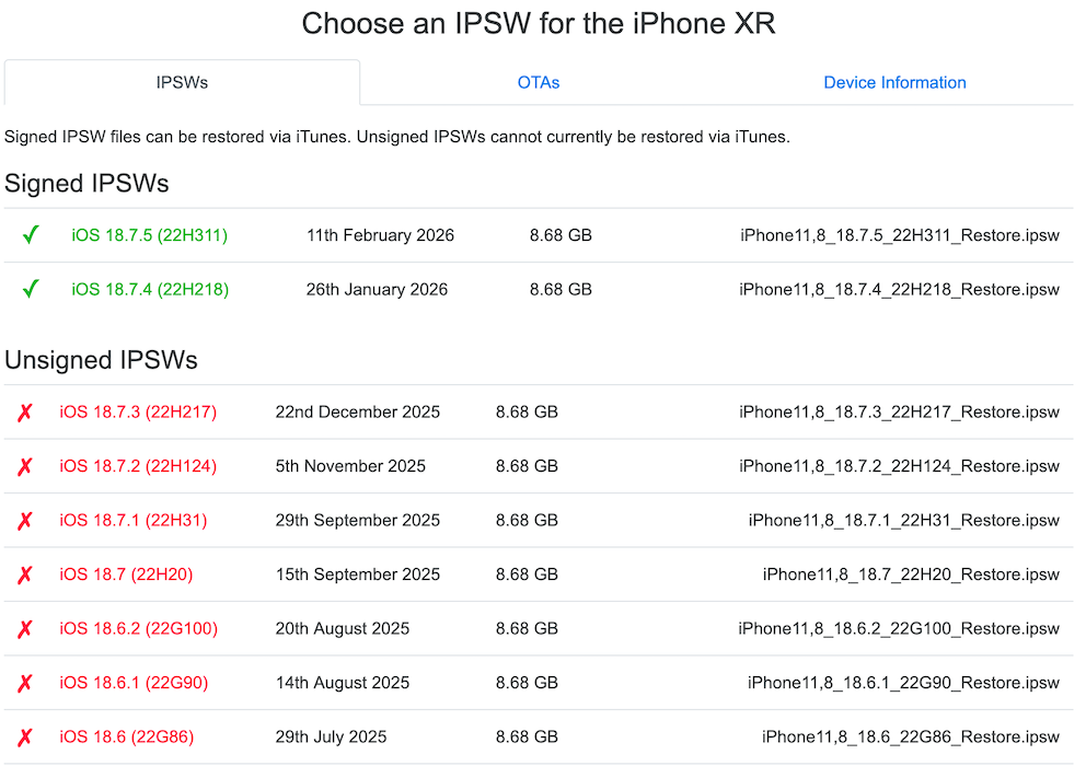 Wenn du ein altes iOS über ein Image einspielst … wird das von den Apple Servern überhaupt noch signiert / akzeptiert? Ich staune, dass du das iOS18 überhaupt neu installieren konntest!