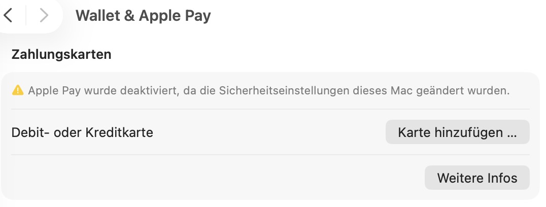 Apple Pay ist auf deinem Mac deaktiviert, weil die Sicherheitseinstellungen geändert wurden.