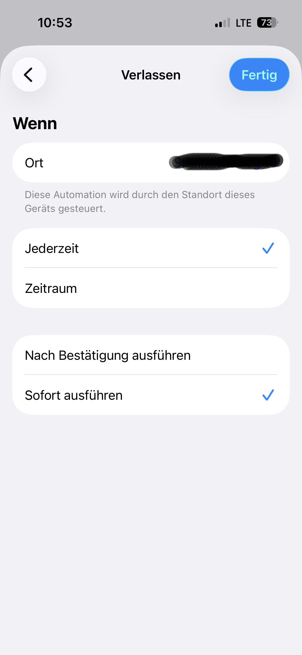 1. Wenn ich den "Ort" verlasse, jederzeit und sofort ausführen dann