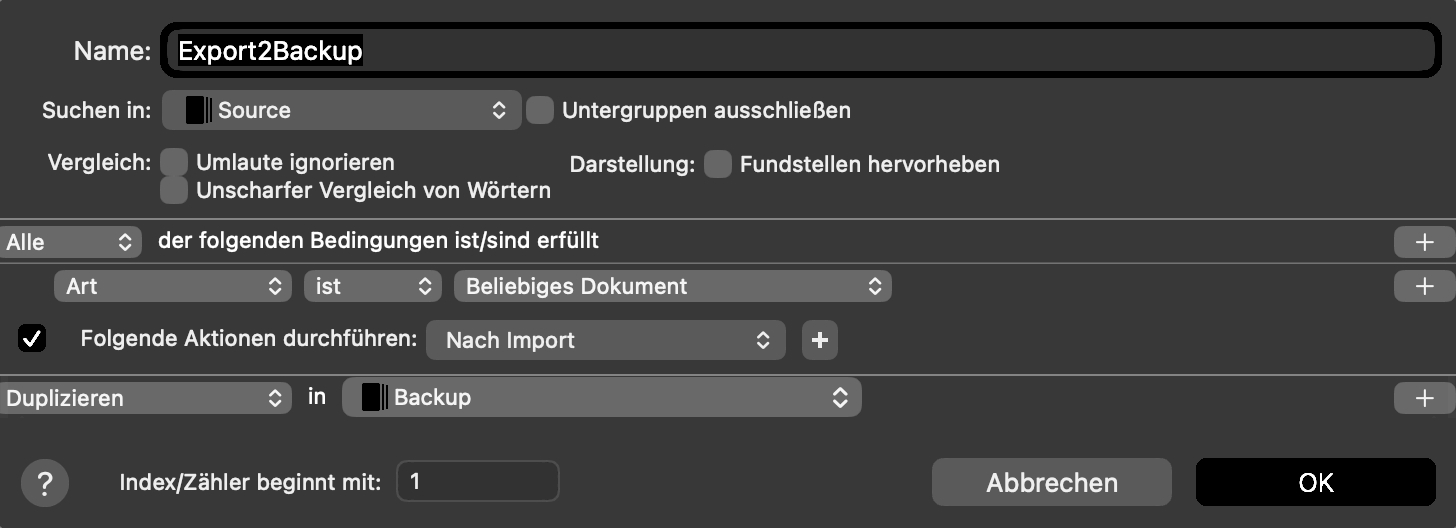 Forum>Software>DevonThink 4.2: Indizierten Ordner in normale DT-Gruppe duplizieren...