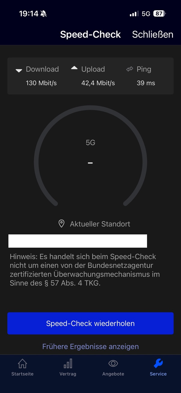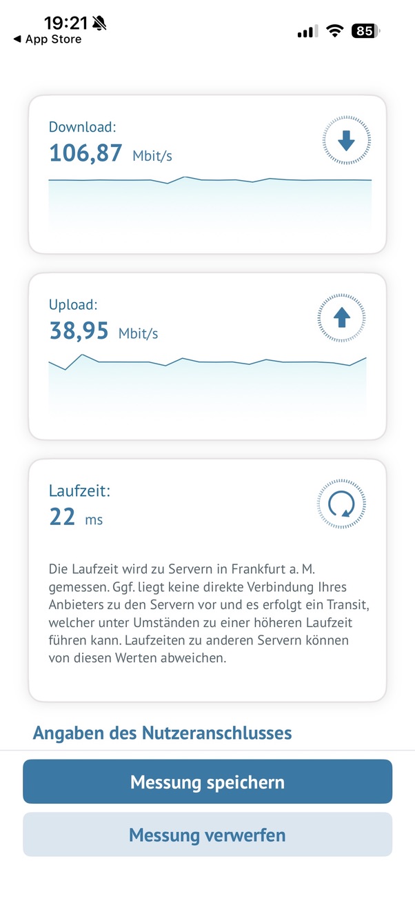 Habe dann gestern einen Speedtest am Router (DSL) gemacht und einen Speedtest am iPhone (5G).