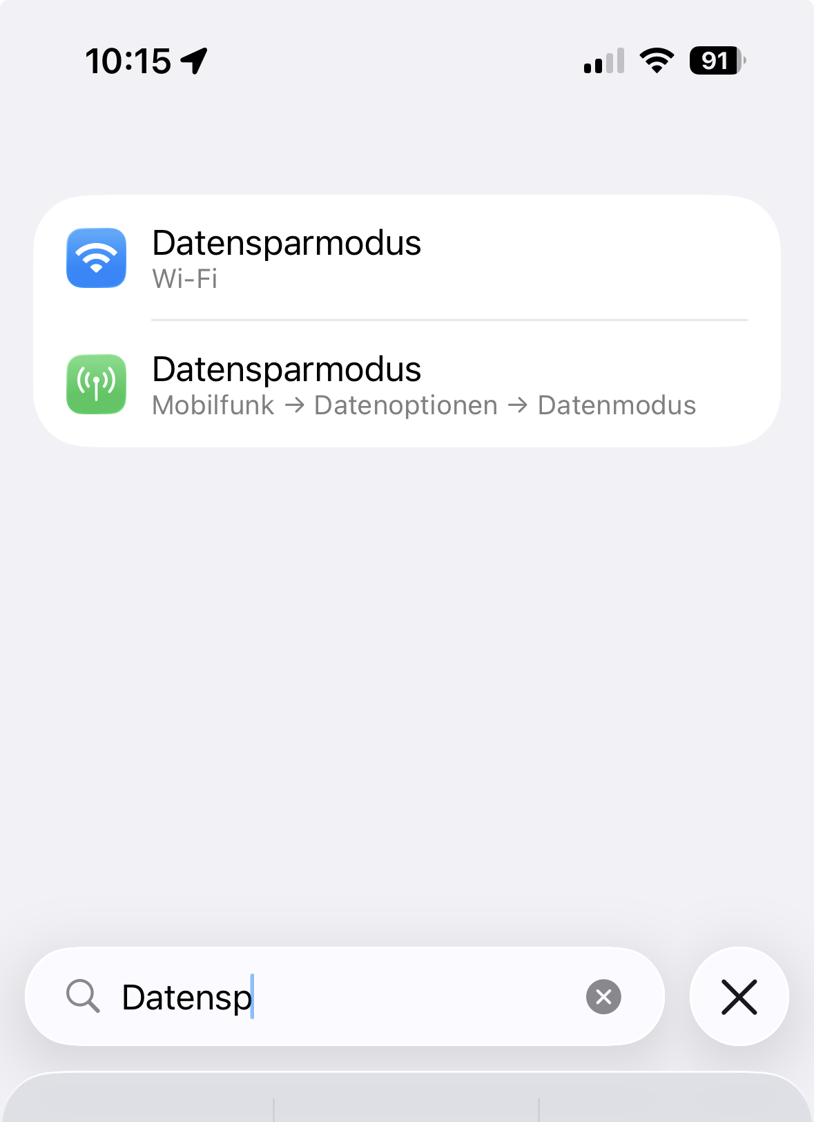 Eine "Datensparmodus" Einstellung kenne ich nur für WLAN, unter "Mobile Daten" gibt es bei mir (15pro / jetzt iOS 26) nichts entsprechendes. WLAN-Unterstützung ist immer ausgeschaltet.