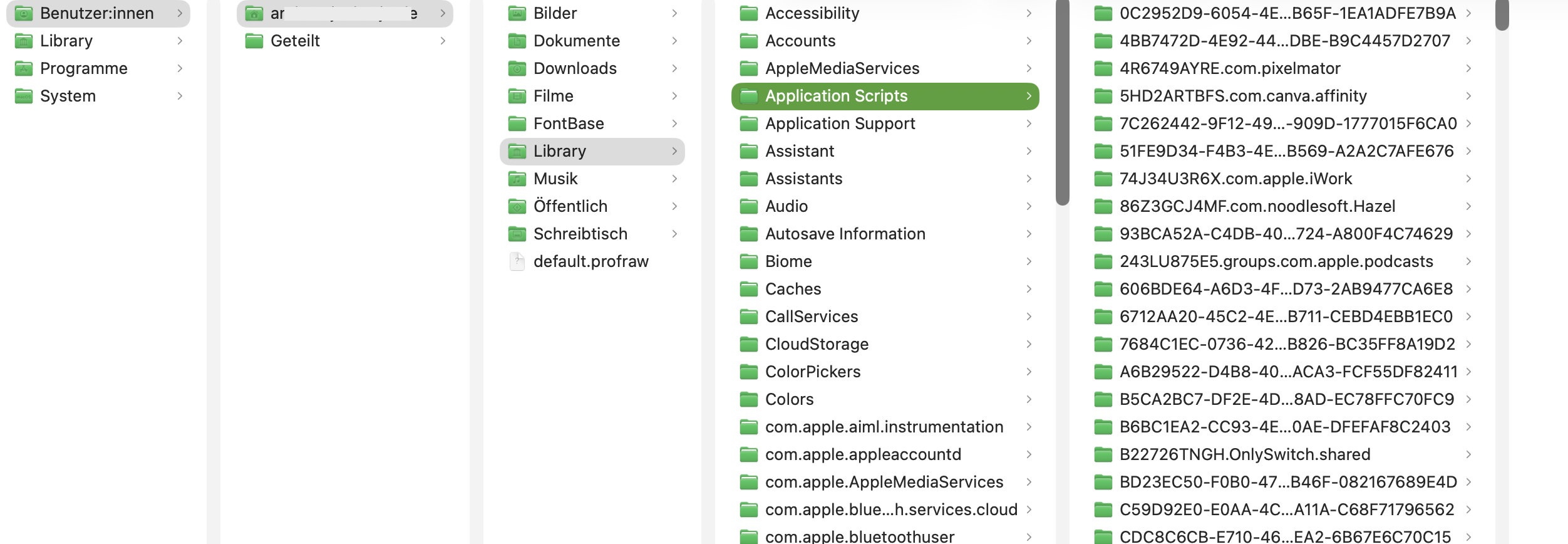 Ordner in dem Verzeichnis (user/Library/ApplicationScripts)