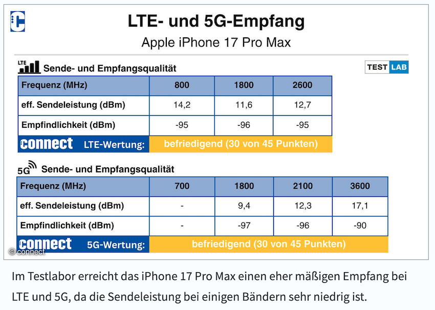 LTE & 5G Mobilfunknetz-Signalverarbeitung beim iPhone 17 Pro (Max) – wirklich optimiert?