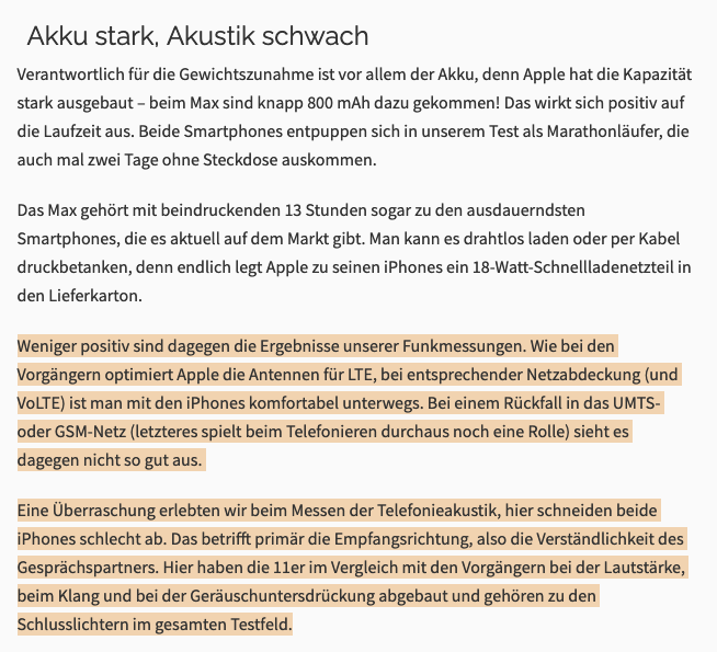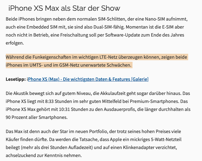 In den diversen Tests von iPhones in den letzten Jahren waren dort die gemessenen Funkeigenschaften nie wirklich gut und im Vergleich zu anderen Geräten aus dem Android Lager vergleichsweise schwach. In den Tests der connect wurde dann als Begründung oft darauf verwiesen, dass Apple als amerikanischer Konzern die Funkeigenschaften seiner Smartphones vermutlich vorrangig auf den US Markt hin optimiert hat. Die in Europa und Deutschland gebräuchlichen Funkstandards wurden offensichtlich nicht vollständig oder zumindest nicht optimal implementiert.