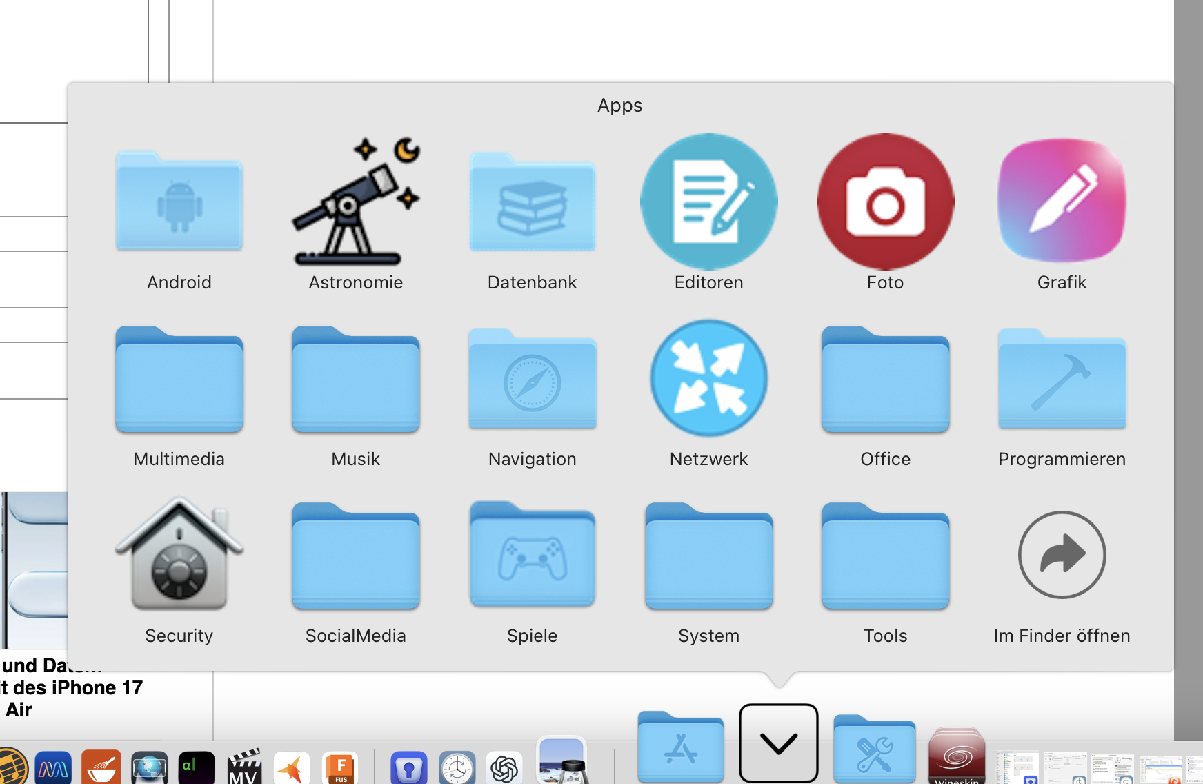 Einen Nachteil der Tahoe-Neuerung bedaure ich allerdings: Man kann nicht mehr — wie zuvor im Launchpad — Apps aus dem AppStore mittels der Optionstaste identifizieren (und ggfs. durch Klick auf das angezeigte X löschen). Ich frage mich, ob denn irgendeine der genannten Launchpad-Alternativen diese Funktion nachbildet.