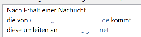 Nachrichten von einem spezifischen Absender werden an mein privates Mailkonto zuverlässig weitergeleitet. Ich habe aber keine Konfiguration wie