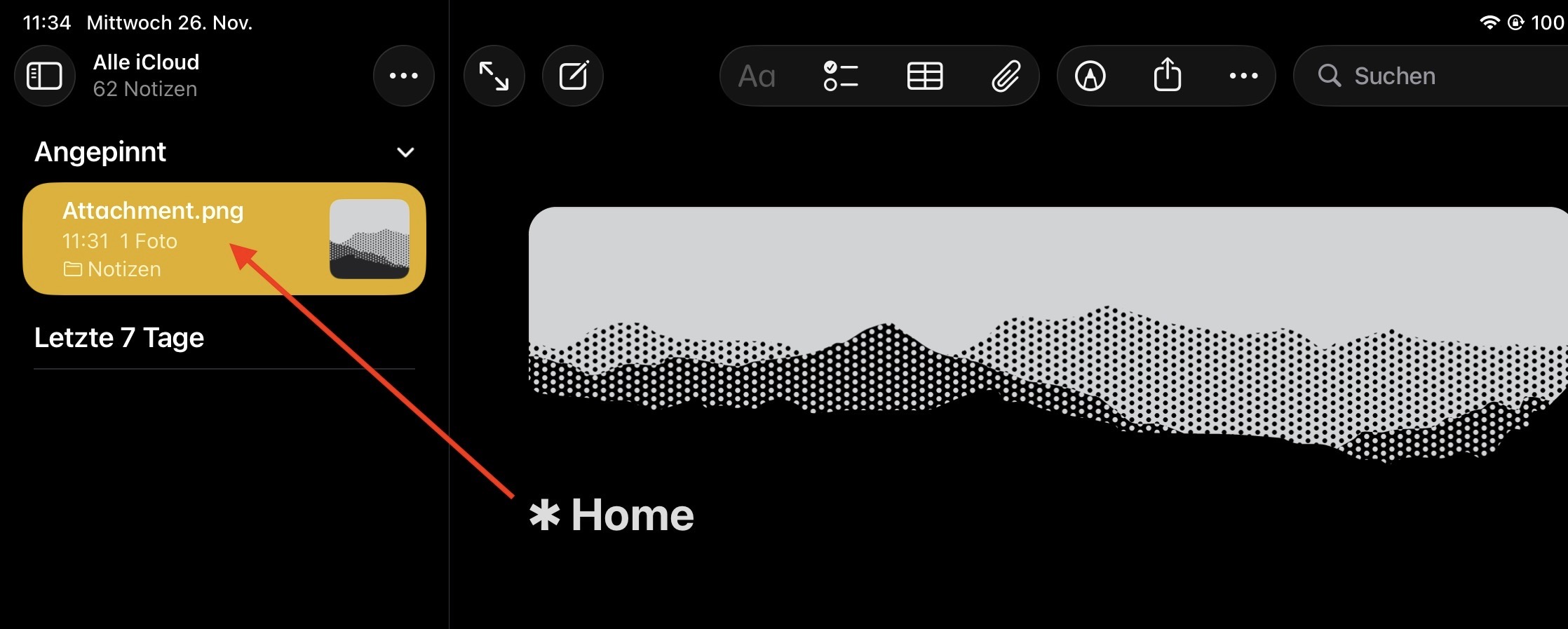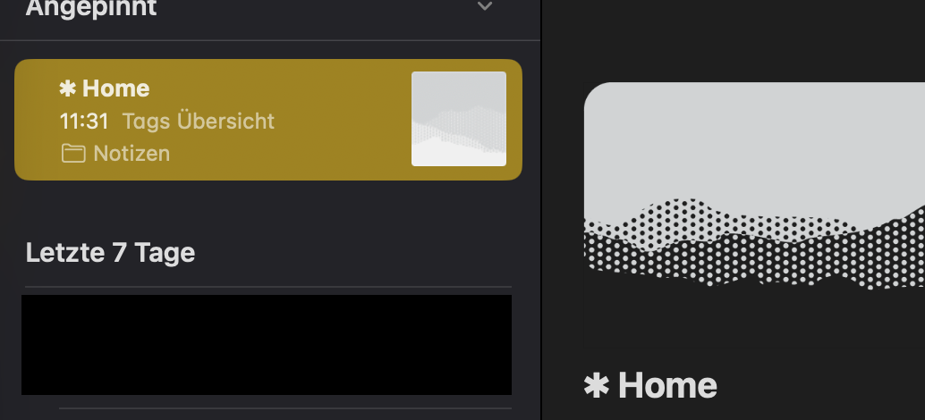Bei manchen Notizen habe ich eine Grafik eingebunden, und das wird auch in der Übersicht angezeigt -- statt dem Titel-Text.