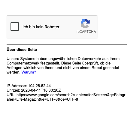 Legt man es für Google nett aus: Der Traffic sieht für Google verdächtig aus, daher der Captcha.