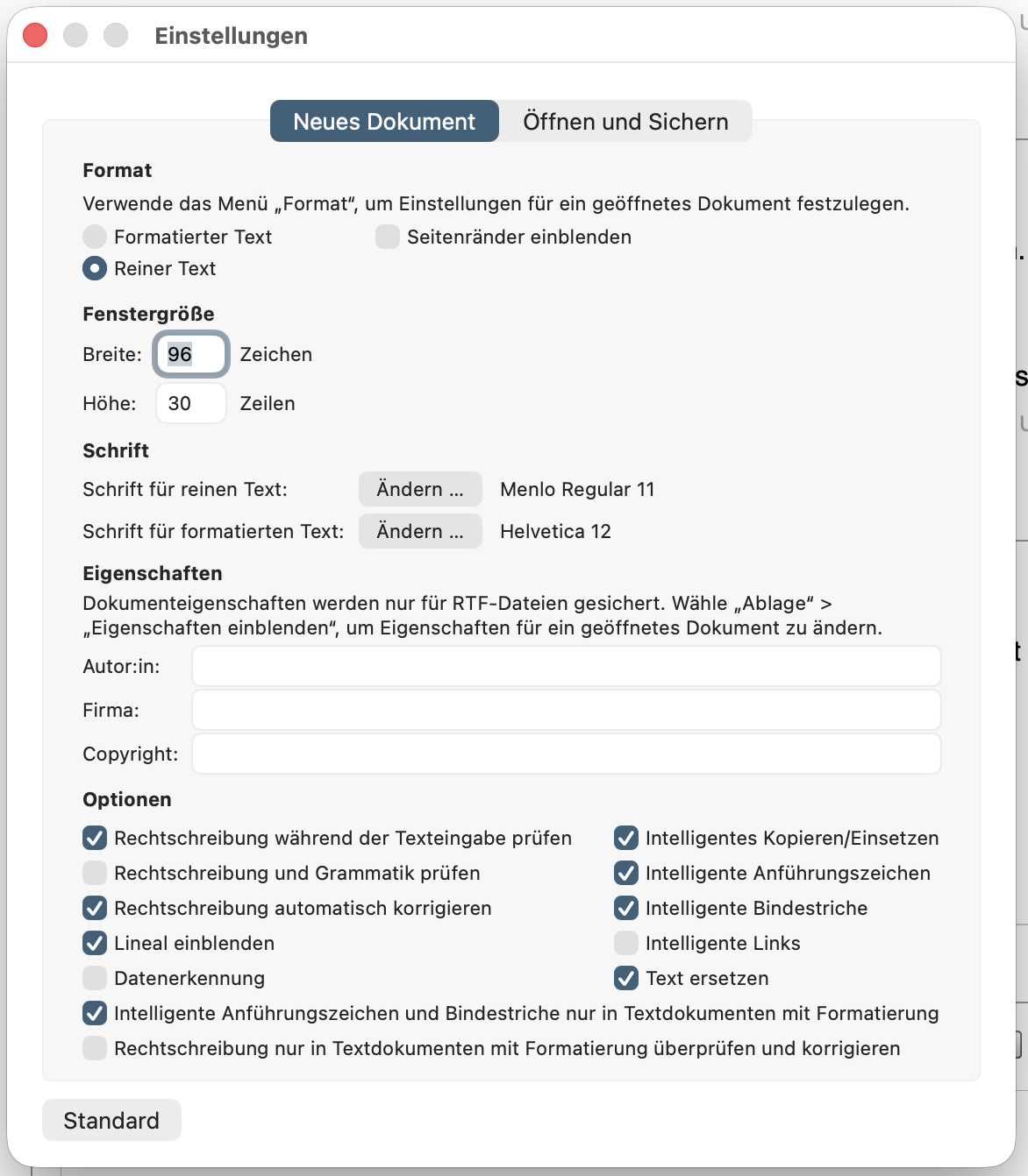 Ich habe ein kleines Problem. Ich sichere oft reinen Text mit TextEdit und habe das Programm entsprechend eingestellt. Vor meiner kürzlichen macOS-Neuinstallation wurden alle Dokumente sauber als .txt aber ohne sichtbaren Suffix gespeichert. Das klappt nun nicht mehr. Entweder ich gebe beim Speichern .txt als dann auch sichtbare Endung an oder es wird nur als Dokument und nicht mehr als Reiner Text gespeichert – die Folge QuickLook funktioniert nicht mehr.