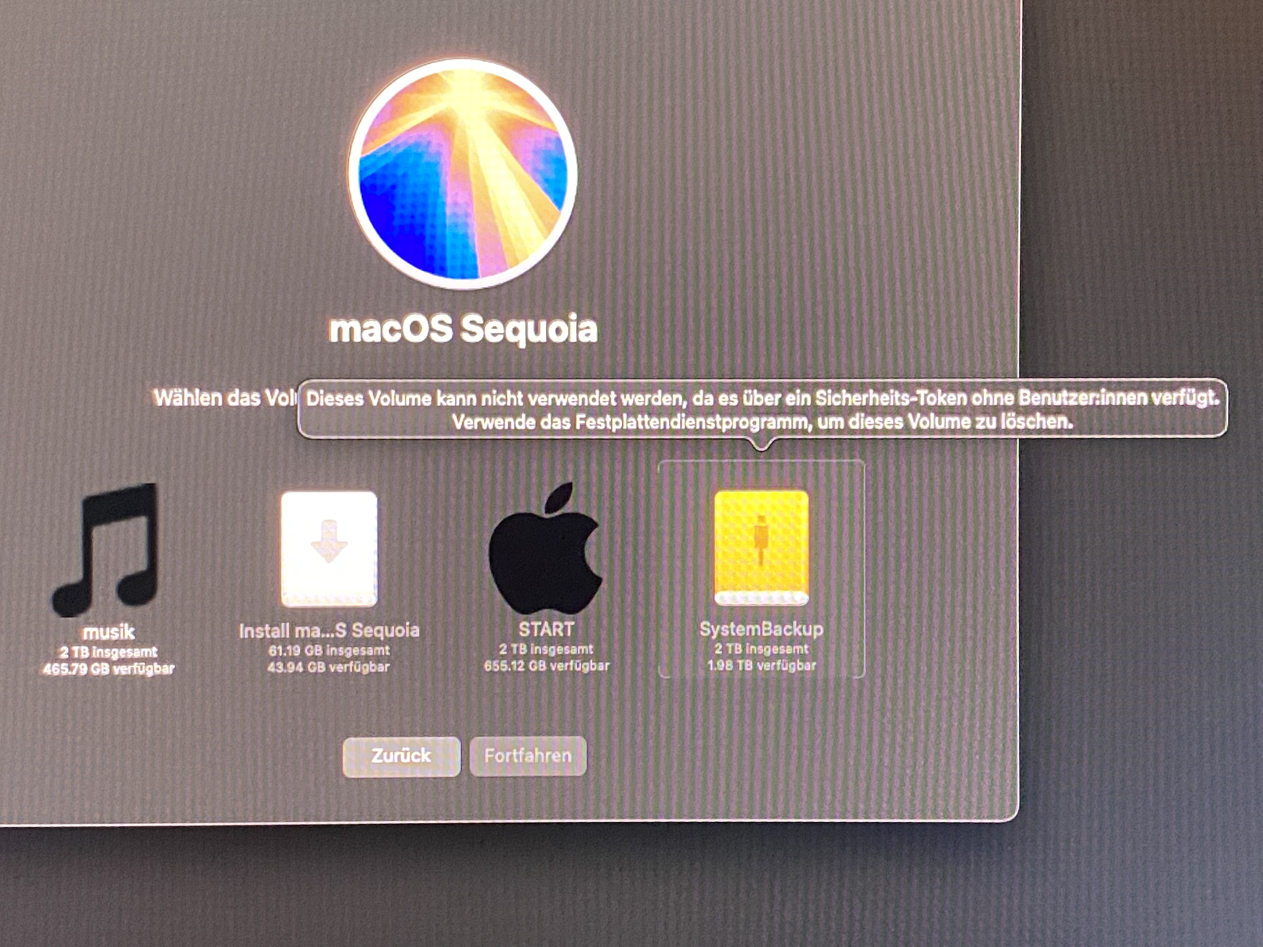 Gelöscht (APFS) habe ich diese SSD dann auch nochmal und Sequoia nochmal vom Stick installiert. Gleiches Ergebnis.