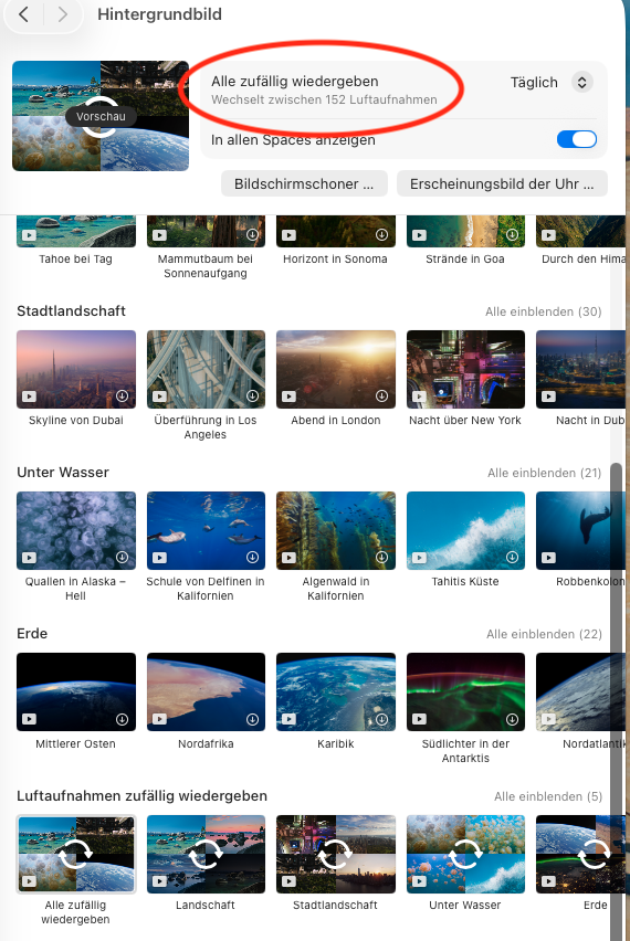 Stimmt. Hatte ich bei 26.1 gelöscht. Bei jedem Update werden sie aber wieder nachgeliefert. Unter 26.2 hatte ich sie wieder. Letztlich habe ich genug Platz und einige dieser Bewegtbilder sind durchaus toll.