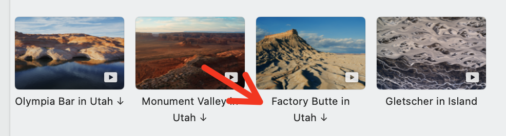 Wenn Sie den Mauszeiger über ein bestimmtes bewegtes Bild halten, wird der geografische Standort, wie zum Beispiel "Hong Kong Harbor" oder "Iceland Fjord", direkt darunter angezeigt.