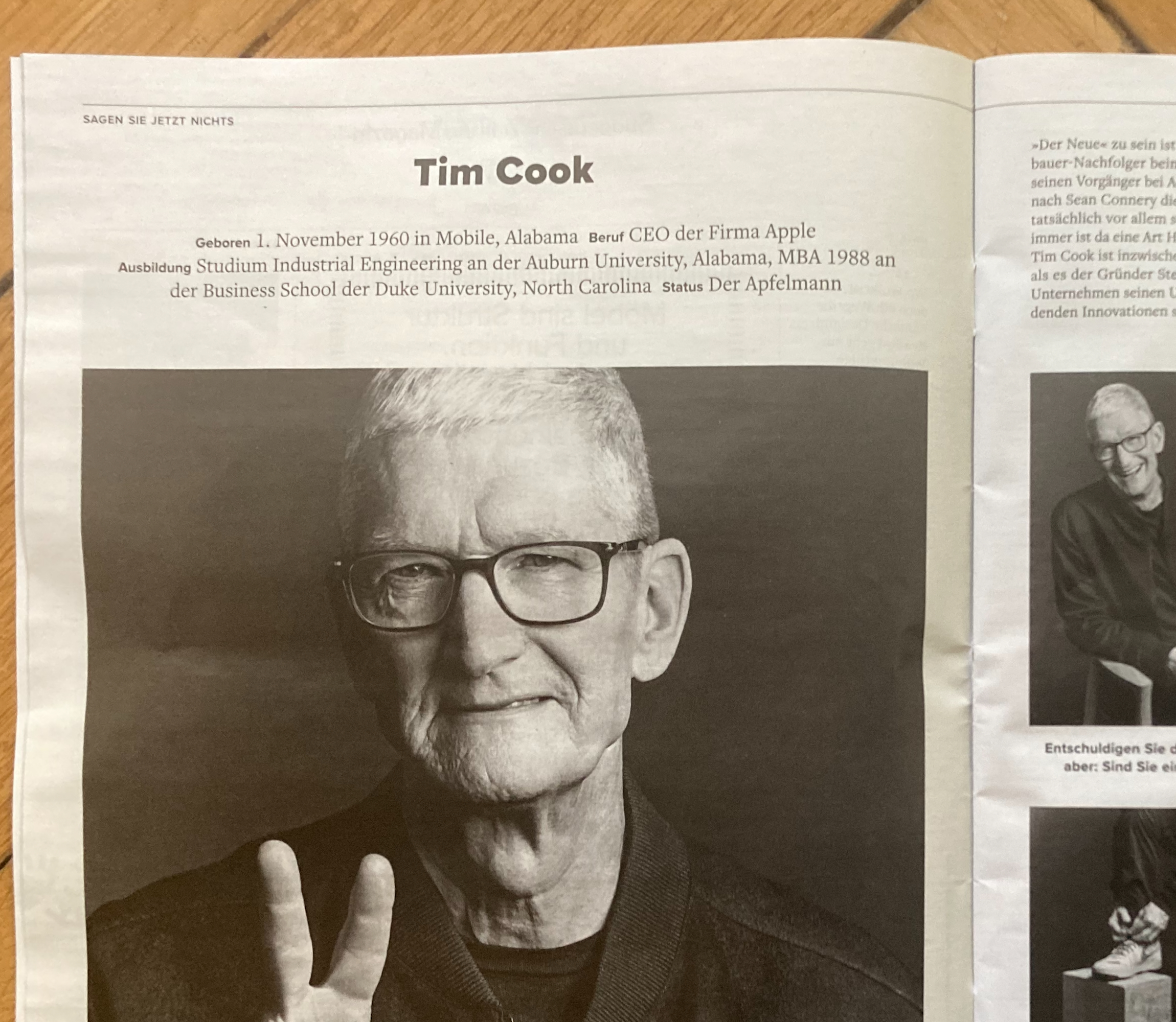 Tim Cook in "Sagen Sie Jetzt Nichts"; Heute im SZ Magazin