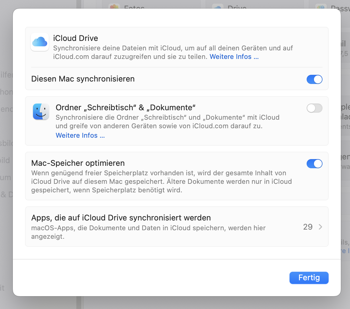 In aktuellen macOS-Versionen ist diese Einstellung verschwunden, aber das System optimiert weiterhin basierend auf verfügbarem Speicherplatz und Nutzungsmustern. Das System entscheidet nun eigenständiger, welche Dateien lokal bleiben sollen.