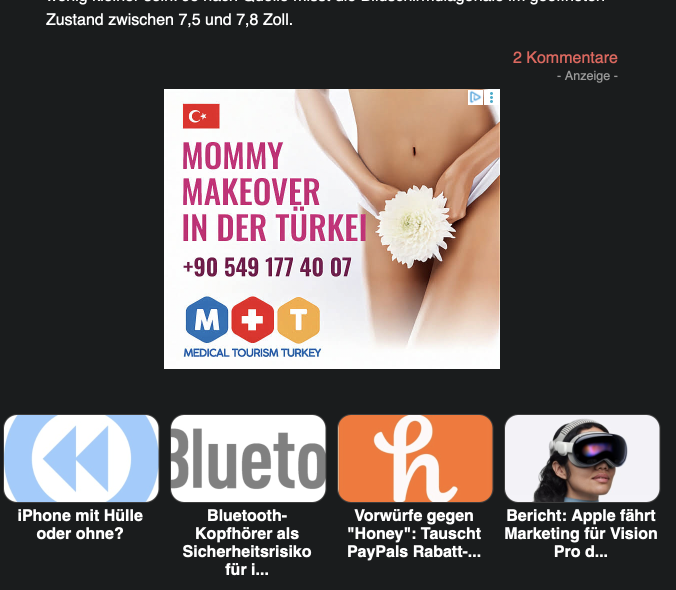 Ich finde es ja schade, dass man hier direkt von vielen (wenn auch nicht allen) direkt angepöbelt wird, weil jemandem die Art der Werbung hier nicht gefällt. Ich habe mir mittlerweile tatsächlich MacTechNew Premium geholt, um diese Werbeanzeigen nicht mehr zu sehen. Aus meiner Perspektive (und vermutlich bin ich der einzige, der das so sieht) grenzten viele der Anzeigen fast schon an Softp*rn (und nein, sowas gucke ich mir sonst nicht an). Vielen mögen kein Problem mit sowas haben, aber ich schon. Ich hatte damals sogar eine E-Mail an MacTechNews geschrieben, aber die haben auch nur gemeint, dass sie keinen Einfluss auf spezifische Anzeigen hätten (irgendeinen Einfluss müssen sie aber haben, denn sonst habe ich solche Anzeigen noch nirgendwo gesehen. Andere Webseiten kriegen sowas scheinbar weg).