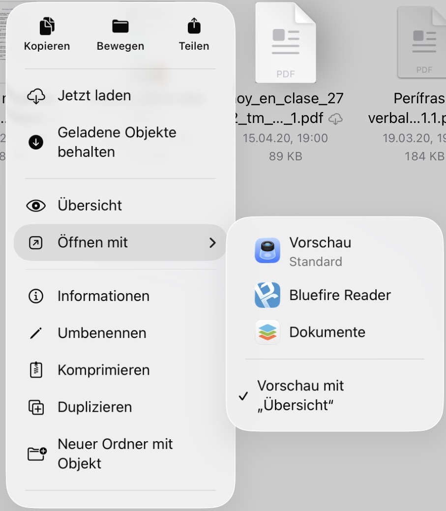 . Damit kannst Du die Voreinstellung ändern, ob Fotos mit Vorschau, einer anderen App oder mit der Übersicht in Dateien angezeigt wird. Das ist quasi wie die Einstellung im Infofenster auf dem Mac.
