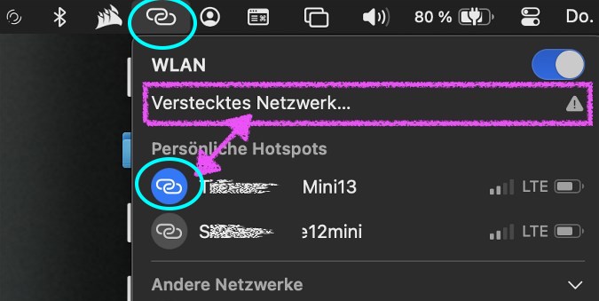 iPhone Hotspot wird als verstecktes Netzwerk auf Mac angezeigt