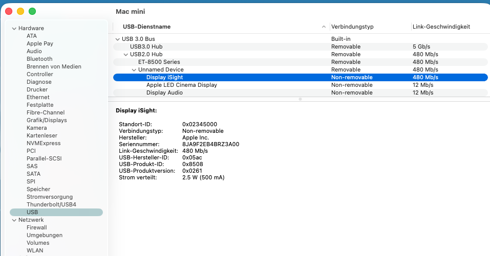 unter USB ist iSight sichtbar, vielen Dank für all die Tipps - ich habe heute alle Teams-Meetings mit der iPhone Kamera gemacht, war i.O. - morgen beim Kunden physisch vor Ort, komme erst wieder nächste Woche dazu eure Empfehlungen zu prüfen