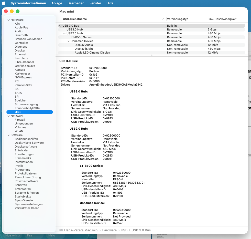 @relax das USB-Kabel vom Monitor, war schon immer eingesteckt über eine USB-Hub 3.0 von Satechi, auch wenn ich das Kabel direkt am Mac-Mini USB 3.0 einstecke bringt es nichts