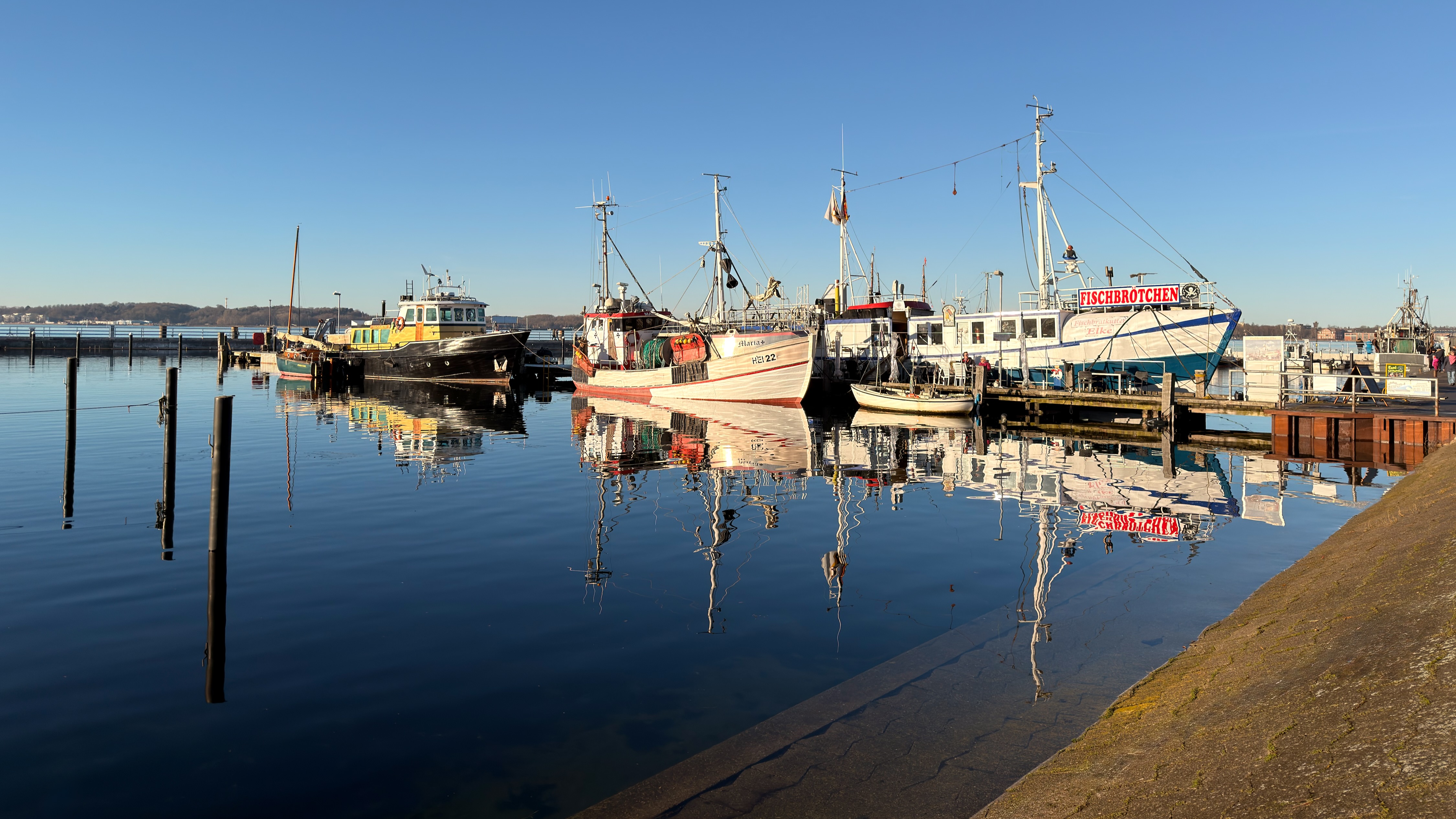 Strahlend blauer Himmel, knapp über 0 Grad, so gut wie kein Wind, ein schöner Spaziergang am Meer und danach ein Fischbrötchen direkt vom Fischer. So lasse ich mir auch den Winter gefallen.