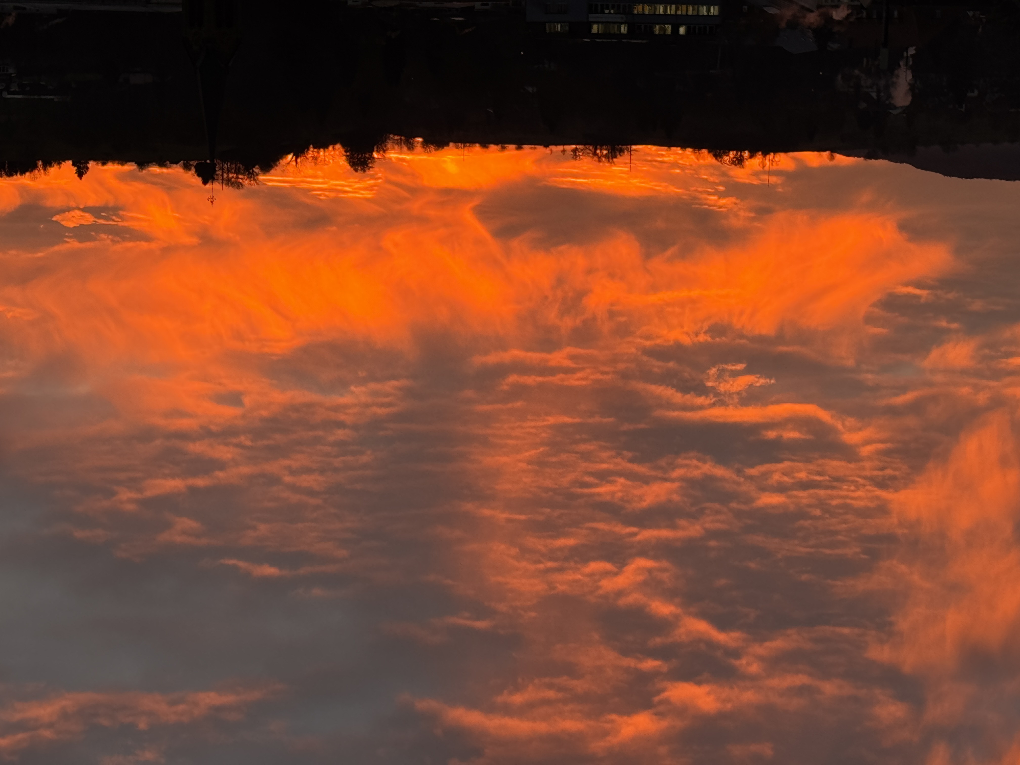 Der Himmel zeigte nur kurz die tollen Farben am Morgen, es war am 19.12.25 um 8:11 Uhr. Fotografiert vom Balkon mit iPhone 15 Pro Max - und völlig unbearbeitet.