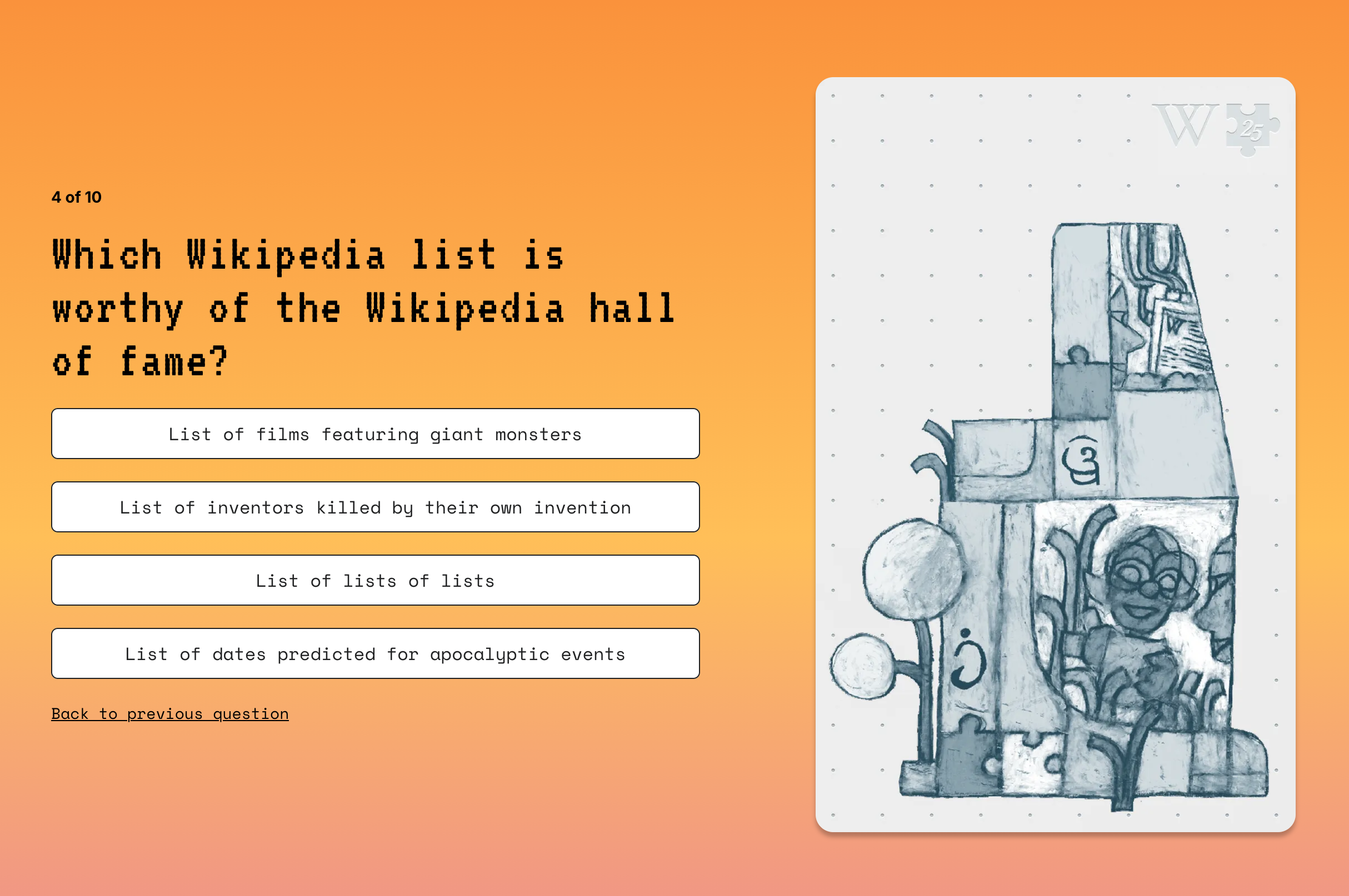 Fünfundzwanzig Jahre sind eine lange Zeit, und trotzdem ist man geneigt, auf dieses Jubliäum mit der Nachfrage „erst?!“ zu reagieren. Das Online-Nachschlagewerk ist für viele Menschen so essenziell, dass es sich so anfühlt, als sei es immer schon dagewesen, sobald Internet verfügbar war. Die Website wurde zur beliebten und verlässlichen Referenz für fast jedes Themengebiet. Das Erfolgsrezept: Ehrenamtliche schreiben Beiträge und diskutieren über Änderungen; Server-Infrastruktur, Software-Entwicklung und Organisation werden durch Spenden finanziert – keine Finanzierung durch Werbung, hervorgehobene Sponsoren oder staatliche Unterstützung. Mit einer interaktiven