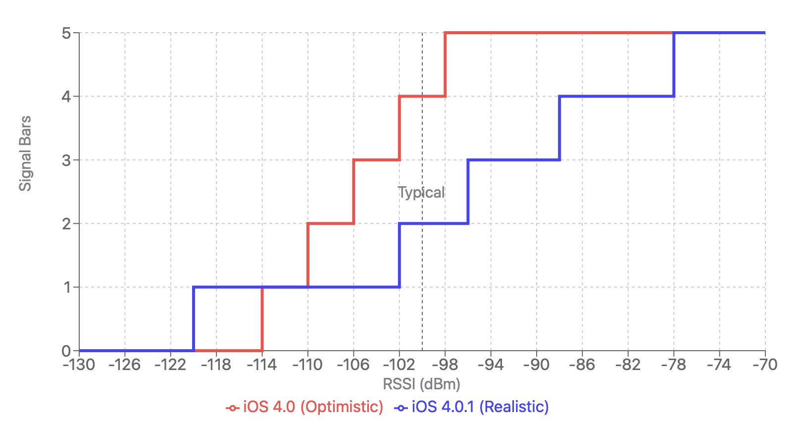 Wie angekündigtDiese Änderung entspricht genau dem, was Apple damals als Erklärung geliefert hatte: Die Werteverteilung war falsch, eine Reduktion der Signalanzeige um zwei Balken schnell zu erreichen. Mit einer Anpassung der Schwellwerte war die reduzierte Empfangsleistung weniger offensichtlich, und nur wenige Kunden bemerkten in der Folge eine schlechtere Datenverbindung.