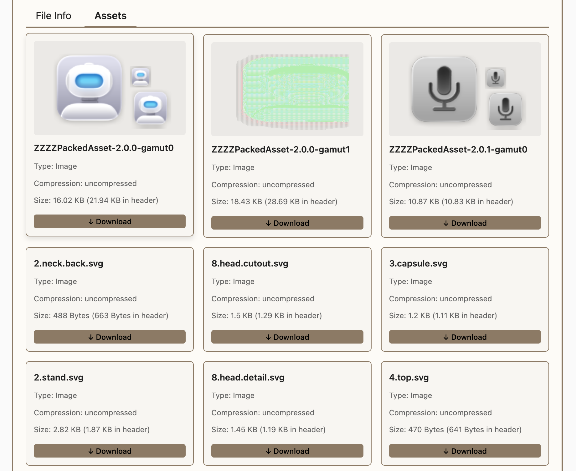interaktive Demonstration in seine Website ein. Zieht man eine Assets.car-Datei aus einer beliebigen App auf den dafür vorgesehenen Bereich, zeigt das Applet nach kurzer Zeit deren Inhaltsverzeichnis. Nach einem Klick auf den Reiter „Assets“ erscheint eine Übersicht der enthaltenen Medien. Bei Asset-Katalogen aus Apple-Apps, welche wir damit ausprobierten, entdeckten wir Sammlungen von Bedienelementen, etwa Scrollbalken oder Werkzeugleisten-Buttons. Auch SVG-Dateien, welche die Basis von Liquid-Glass-Icons darstellen, tauchten hier auf. Allerdings erwies sich die Demo als nicht sonderlich stabil – oftmals stürzte der Browser-Tab ab, bevor wir einzelne Grafiken extrahieren konnten. Das gibt der Entwickler freimütig zu – seine Hoffnung ist, dass Software-Entwickler sich berufen fühlen, eigenständige Programme zum Durchstöbern von car-Dateien zu entwickeln.