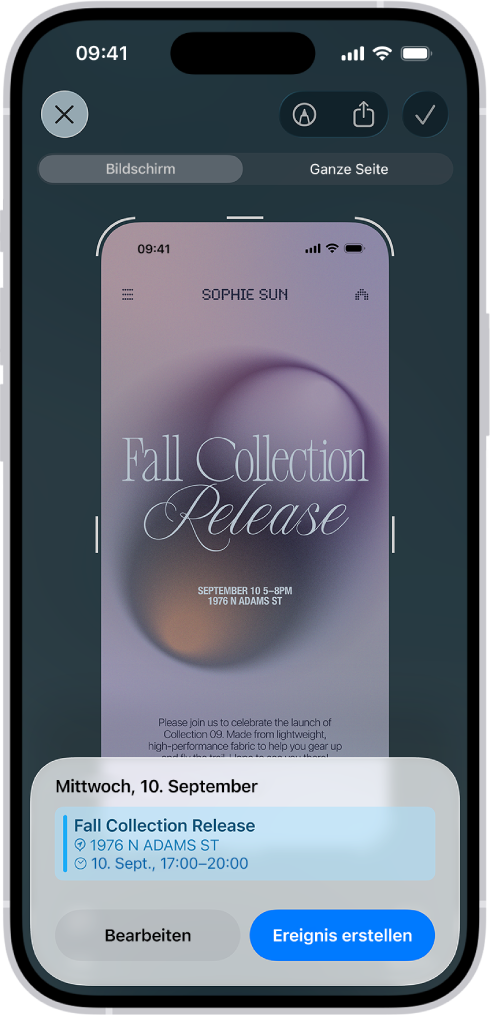 Eine Veranstaltungsankündigung wird dank visueller Intelligenz per Knopfdruck zum Termin. (Quelle: