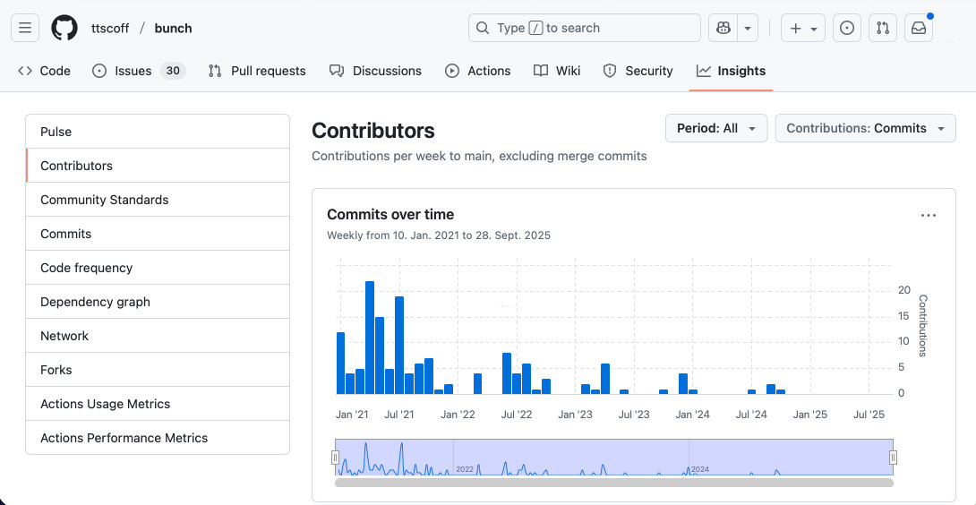 Die GitHub-Ansicht "Insights/Contributors" gibt viele Anhaltspunkte zur Legitimität eines Projekts.