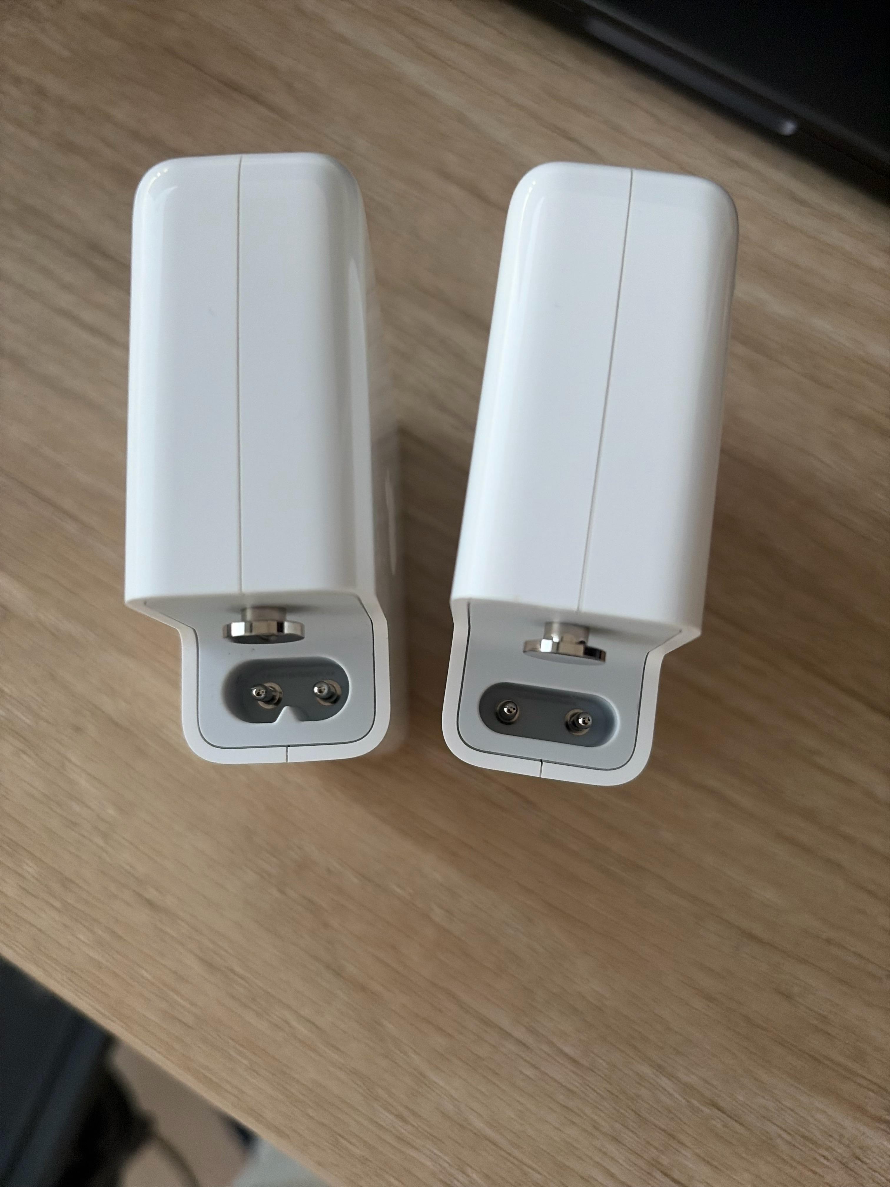 Neuer „Duckhead“ in Australien und China …Es ist durchaus löblich, dass Apple die Möglichkeit einräumt, den Duckhead zu entfernen: Auf diese Weise lässt sich ein anderer Aufsatz anbringen, um etwa für andere Steckdosentypen gewappnet zu sein. Nutzer können so auf entsprechende Adapter oder gar separate Charger verzichten. In einschlägigen Internetforen tauchen nun jedoch Berichte über eine andere Gestaltung des Duckheads in China und Australien auf. Der klassische Anschluss ist etwas größer und der Form nach an eine Brille angelehnt. Der neue Port ist pillenförmig und schmaler: