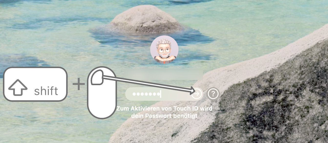 2. Anmeldung ohne AnmeldeobjekteStarten Sie anschließend Ihren Mac neu, ohne besonders abgesicherten Modus, allerdings mit einer kleinen Besonderheit: Nachdem Sie Ihr Nutzerkonto ausgewählt und das Kennwort eingegeben haben, halten Sie die