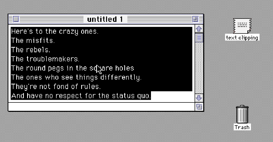 Textclips tauchten erstmals in macOS 7.5 auf.