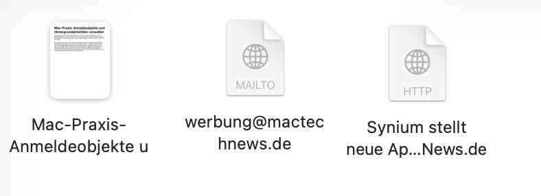In macOS 26 (Tahoe) gibt es Textclips, Weblocs und Maillocs (v.l.n.r.) weiterhin.