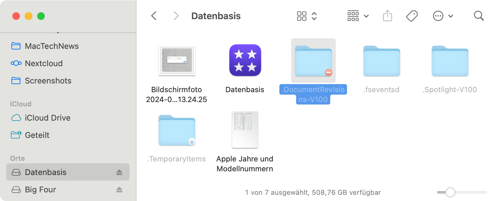 Versionen verstecken sich auf der obersten Ebene eines Volumes – der Finder zeigt den Ordner nur widerwillig an.