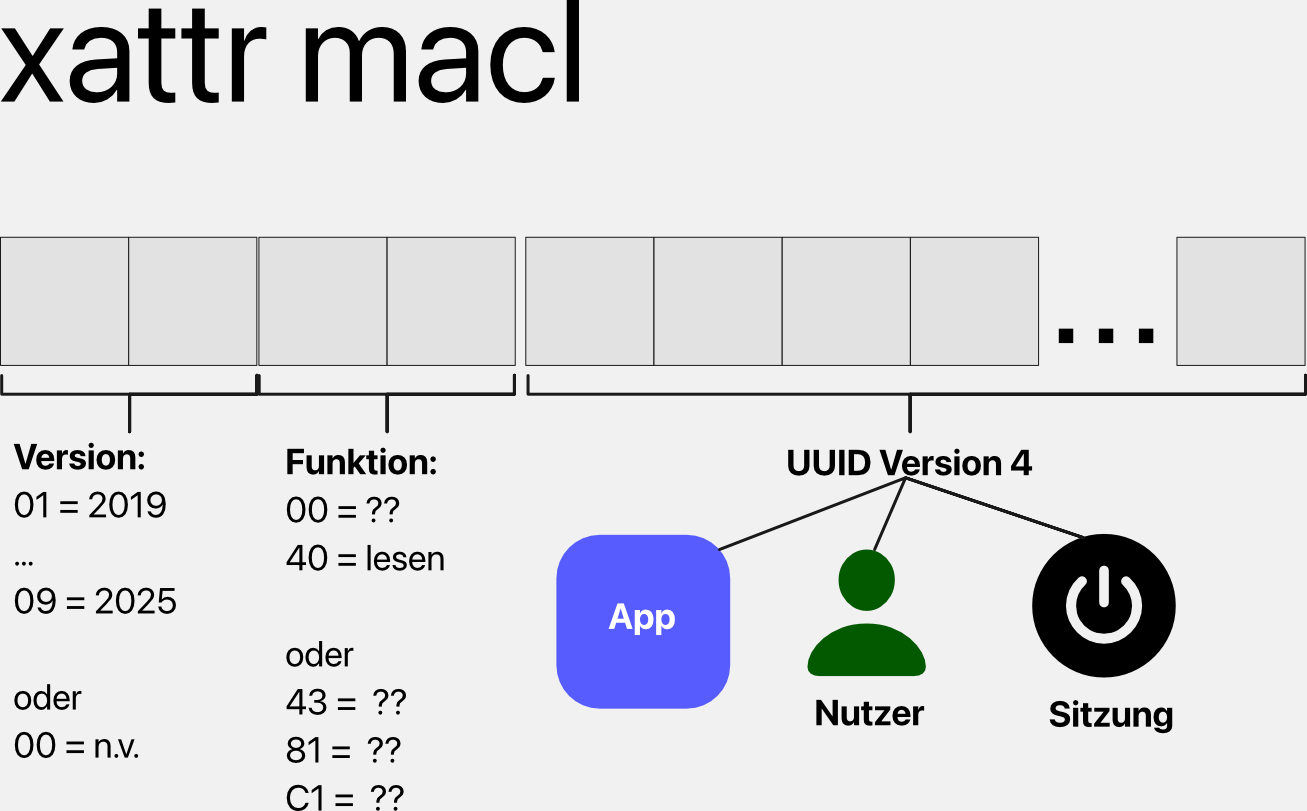 Neustart macht die Erlaubnis ungültigHoward Oakley machte eine interessante Beobachtung: Zumindest in macOS 26.4 (Tahoe) verliert ein MACL-Eintrag seine Gültigkeit, sobald der Nutzer seinen Mac neu startet. Der xattr-Eintrag bleibt zwar erhalten, doch er funktioniert nicht mehr, da die UUID dank der neuen Session ihre Gültigkeit verloren hat. Somit können Nutzer tatsächlich mit einfachen Mitteln die „Intent“-Zugriffserlaubnis (mittels „Datei-öffnen“-Dialog) widerrufen.
