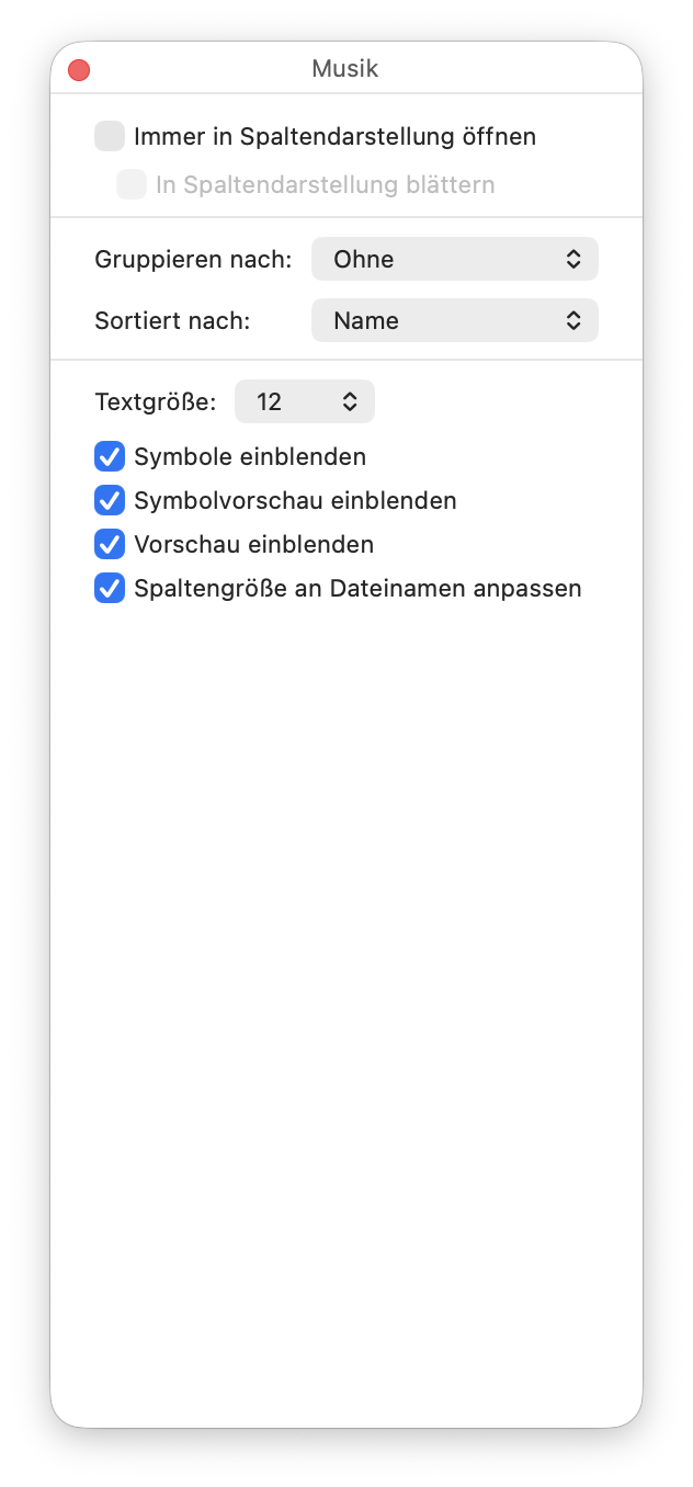 - Klicken Sie in der Menüleiste auf „Darstellung“ > „Als Spalten“, falls noch nicht geschehen