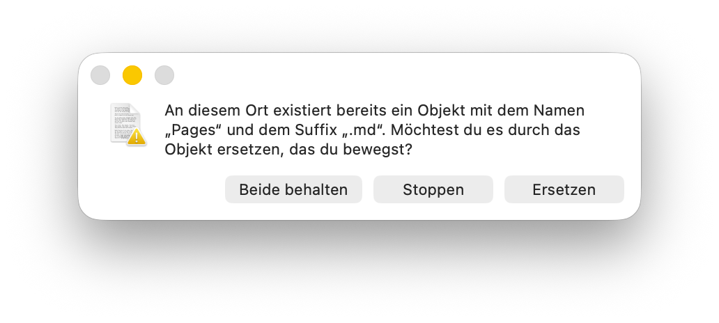 Der Finder erlaubt nicht, dass zwei Objekte mit identischem Namen und demselben Suffix in einem Ordner existieren.