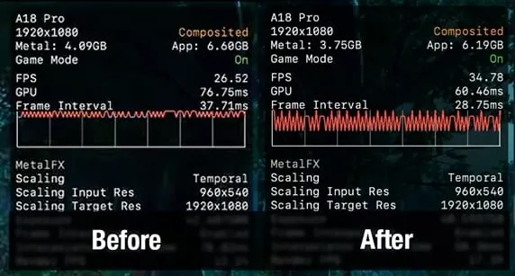 Für den Vergleich wählte sie eine statische Szene im Spiel und verglich die Bildwiederholraten. Im Auslieferungszustand zeigte Crimson Desert bei 1080p-Auflösung auf dem MacBook Neo 26,5 Frames per Second (FpS). Nachdem sie mittels eines Thermalpads eine