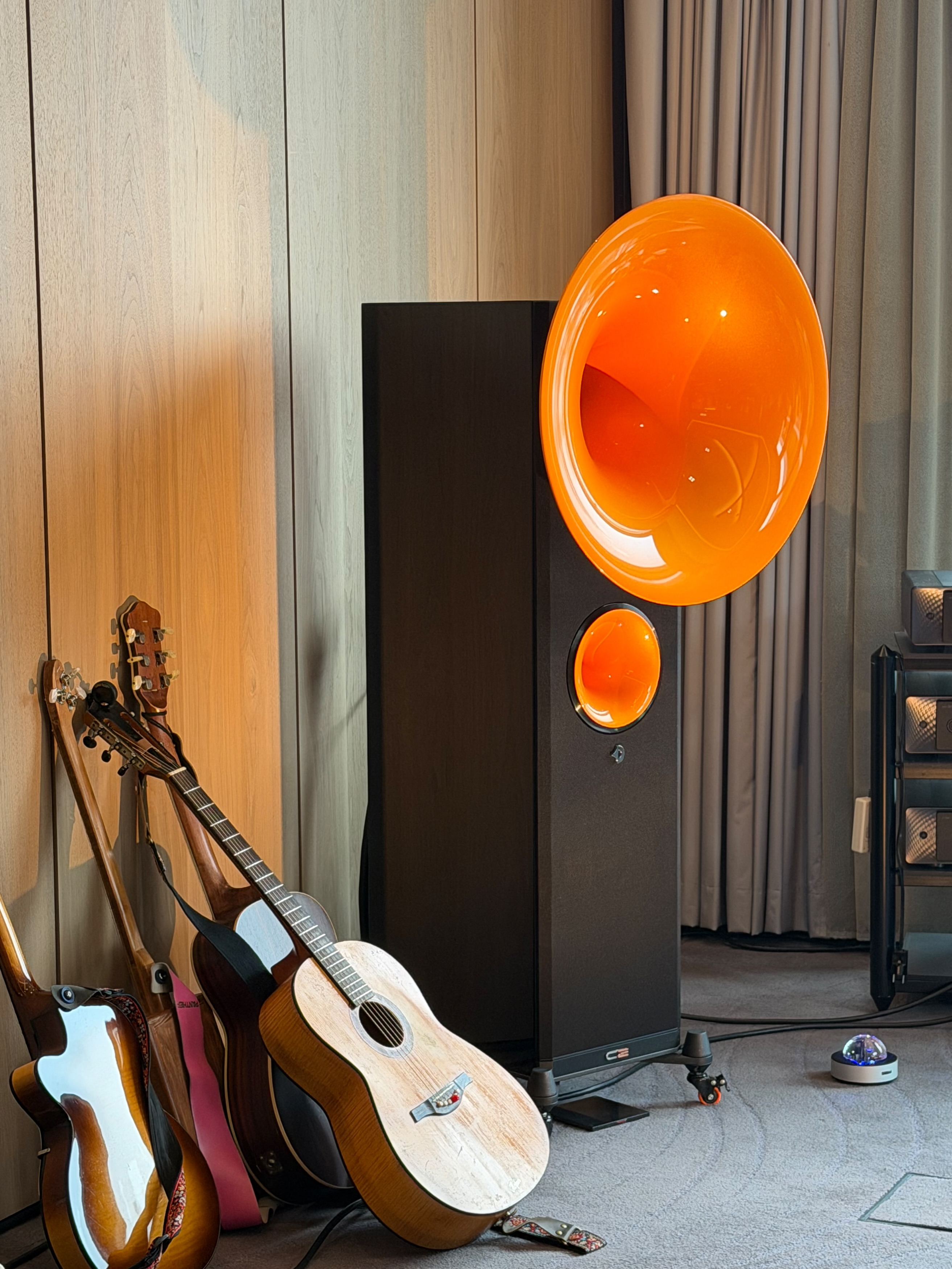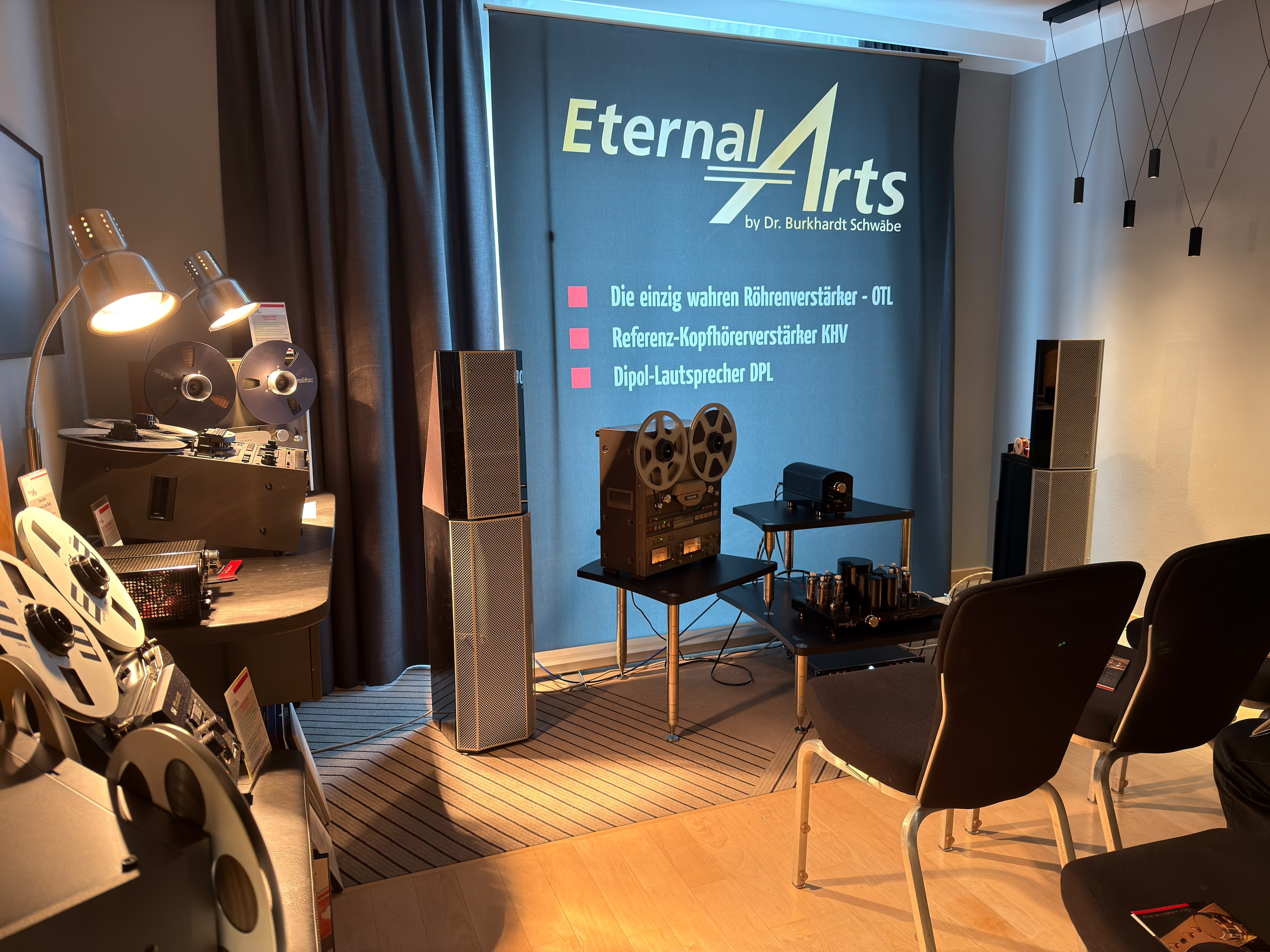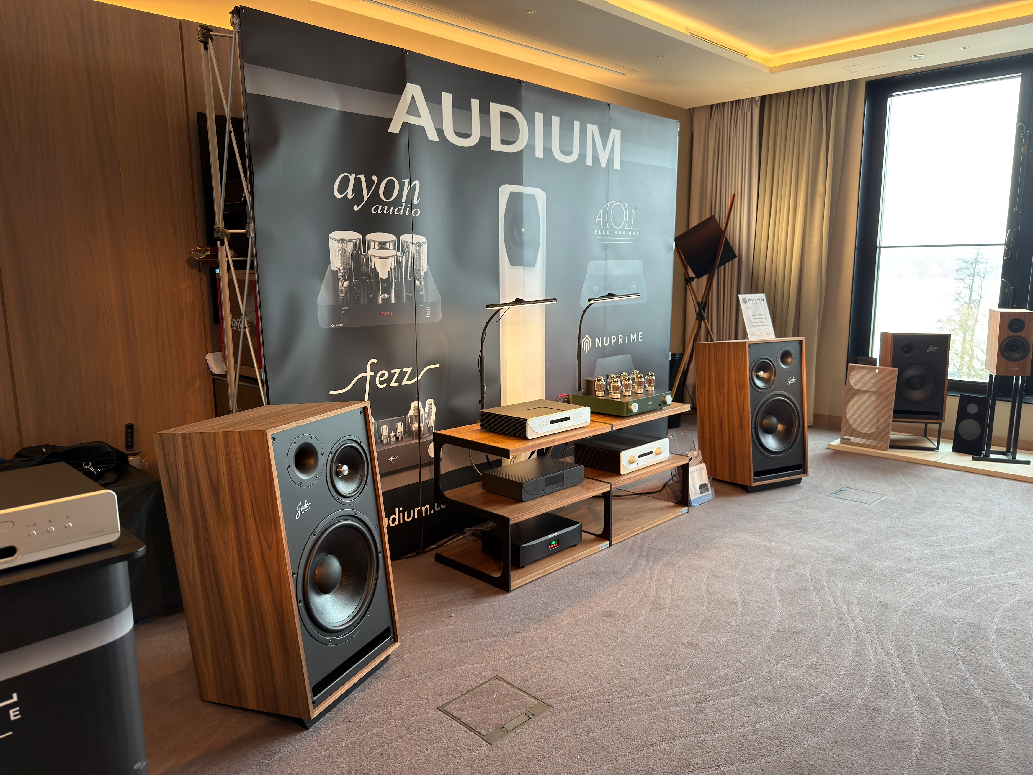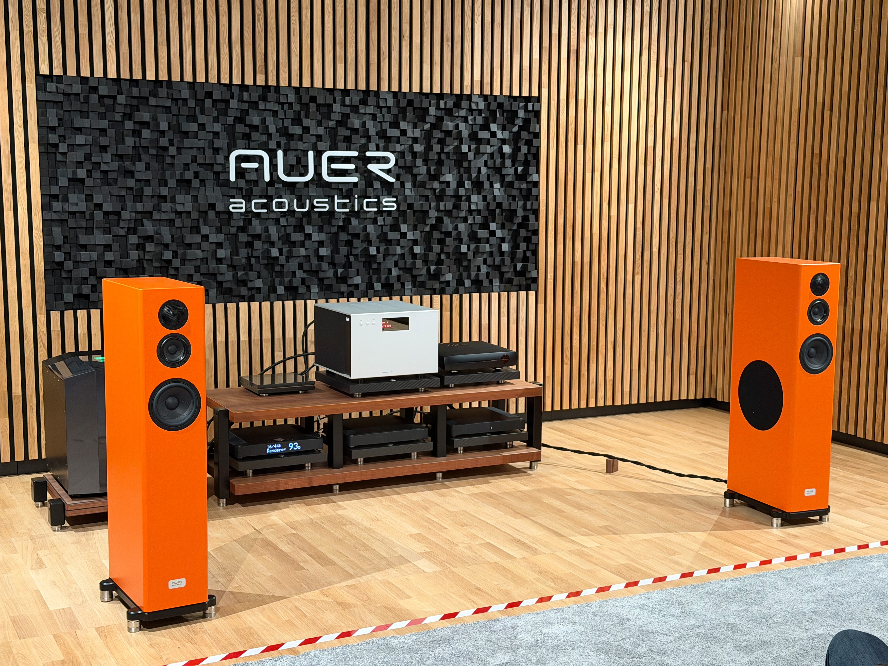 Gleich nebenan spielte die junge deutsche Firma Auer Acoustics (gegründet 2021) ihren Toplautsprecher in einem akustisch umfangreich optimierten Raum.