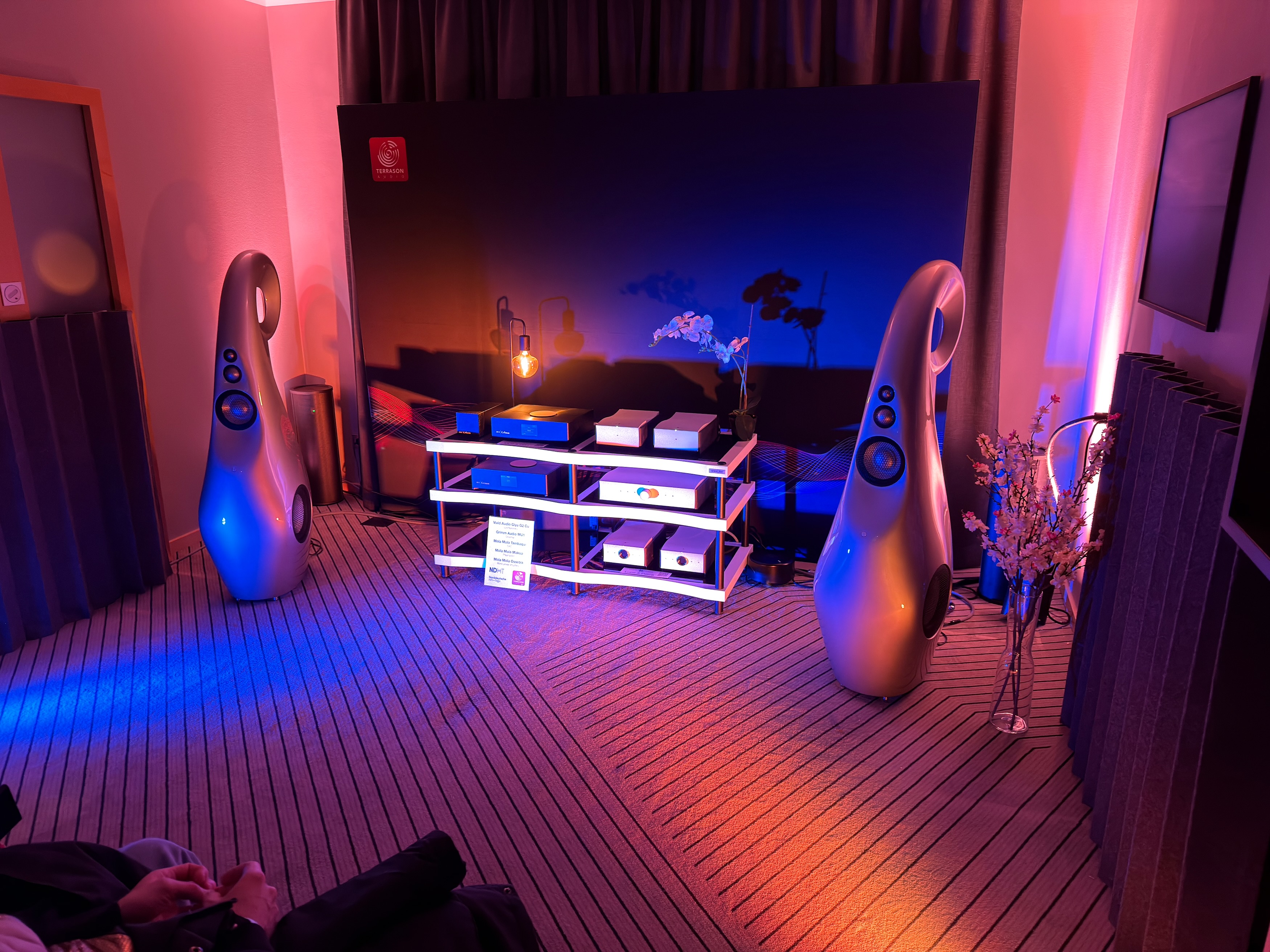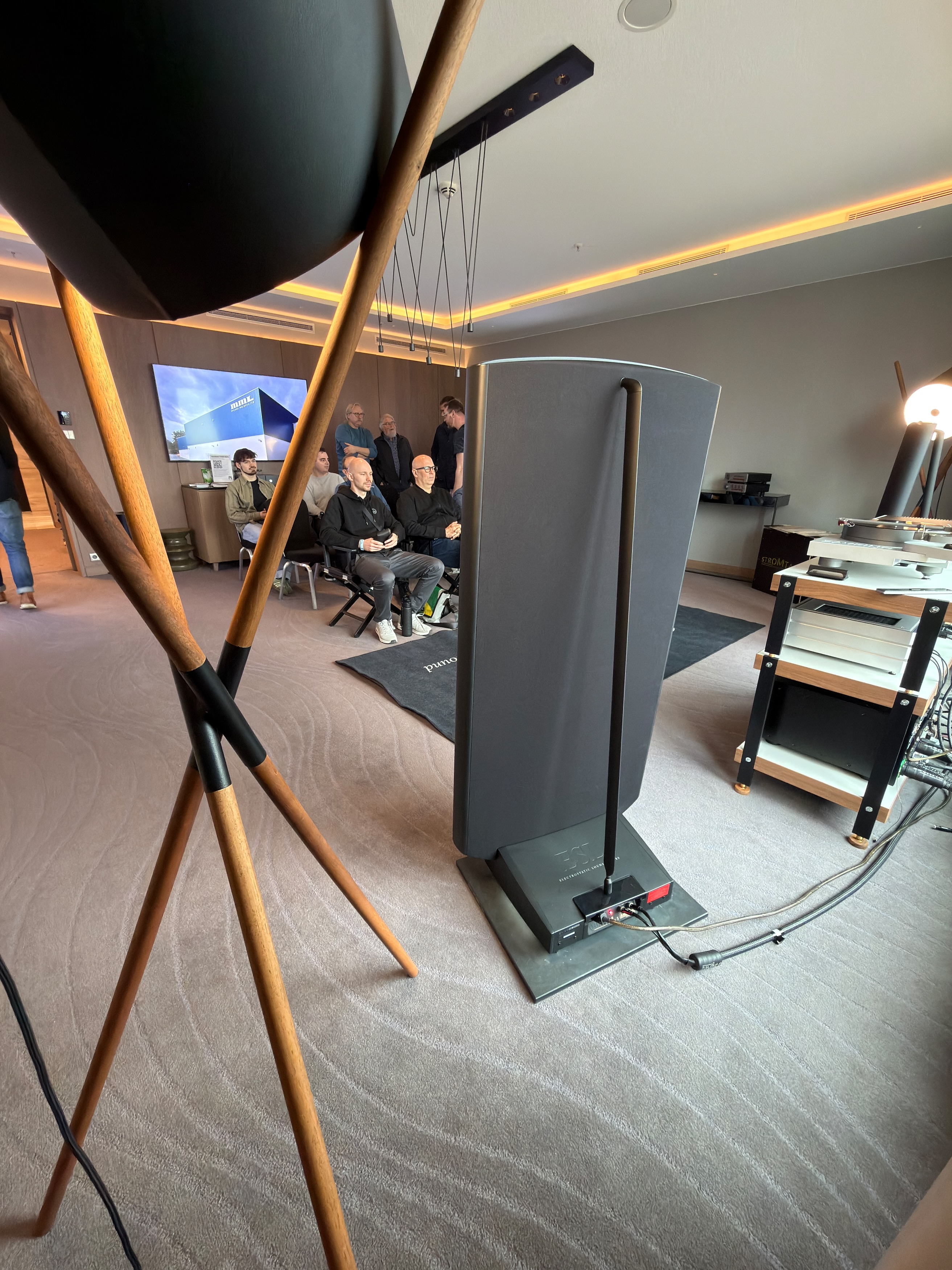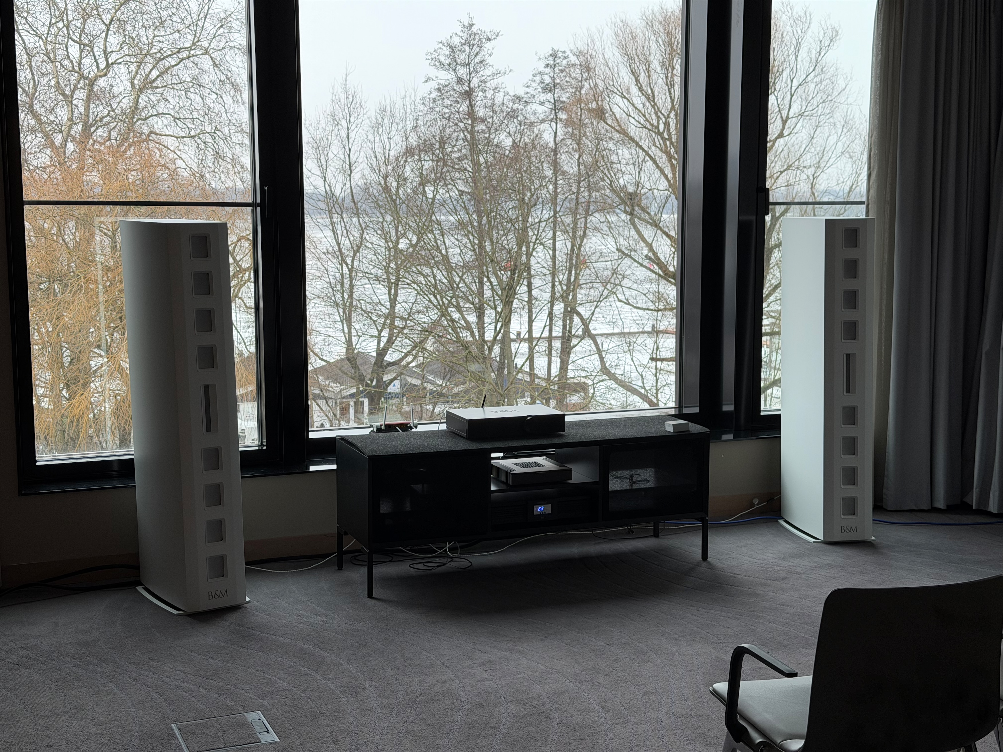 Vorgeführt haben die Dänen mit ihrer eigenen Elektronik der Marken Aavik und Zubehör/Kabel von Ansuz. Im Zentrum des Geschehens standen die Traumhaft schönen Børresen T5 Lautsprecher und der brandneue Subwoofer BM3 in "gefalteter Dipol"-Technik.