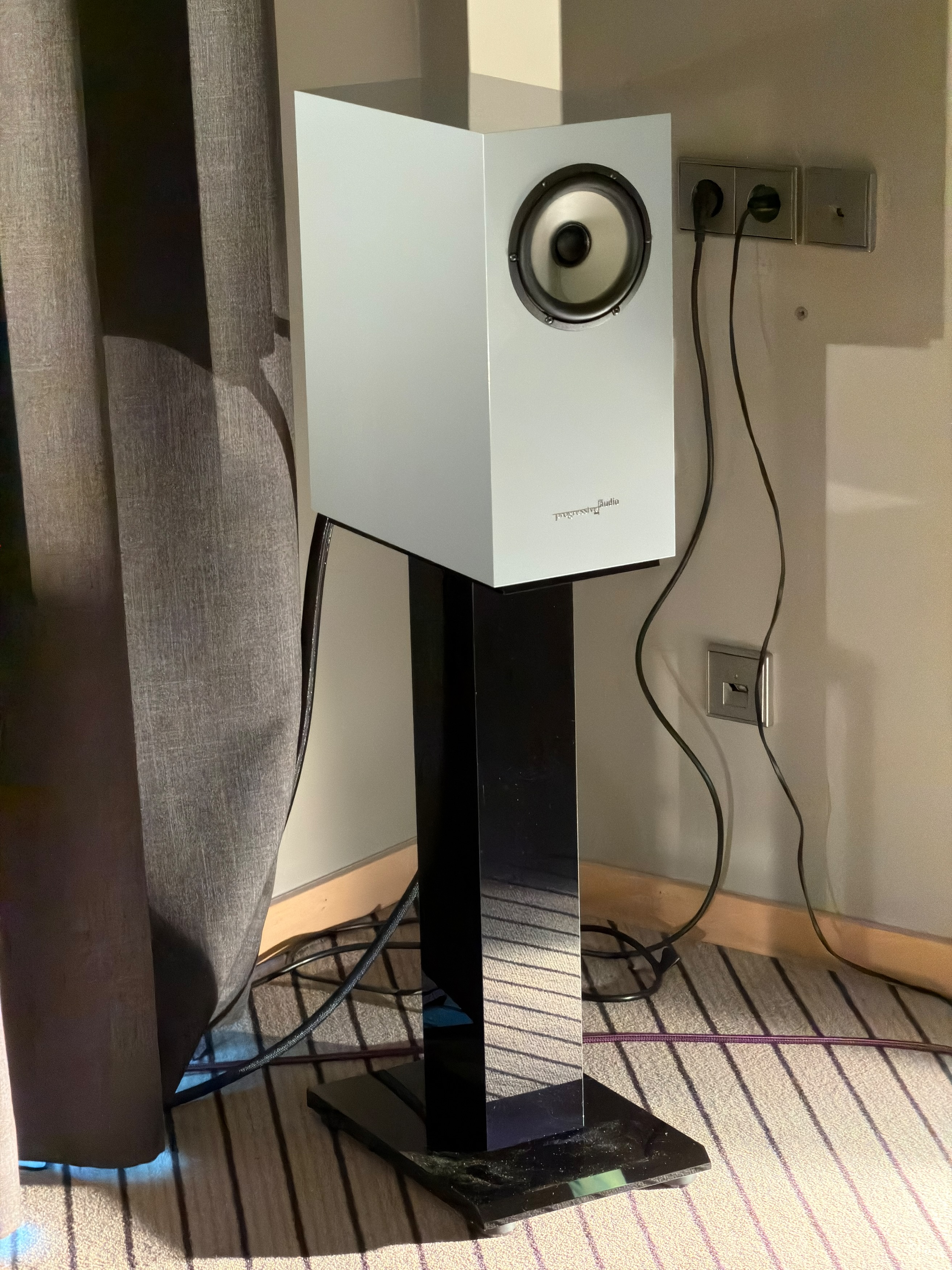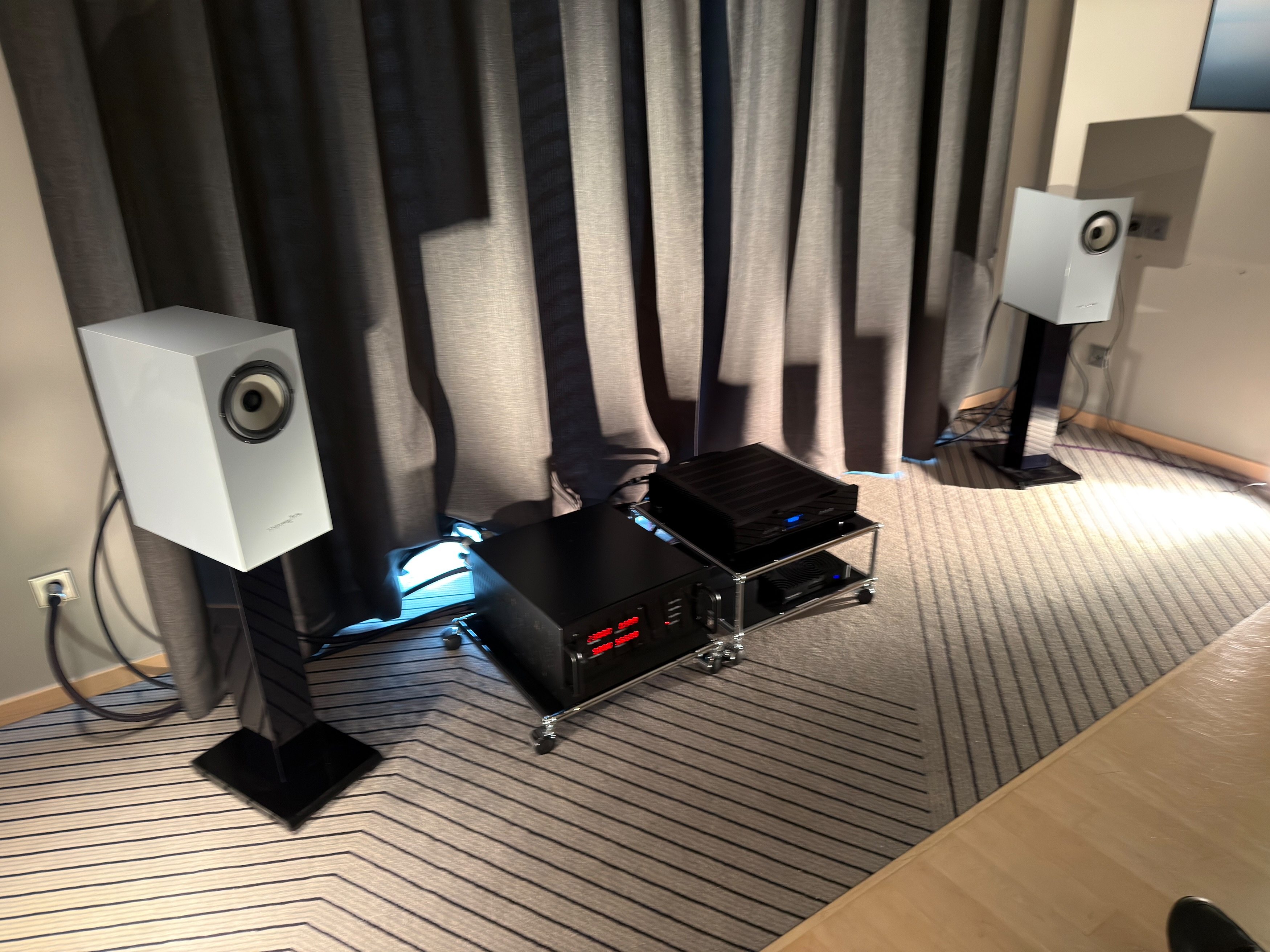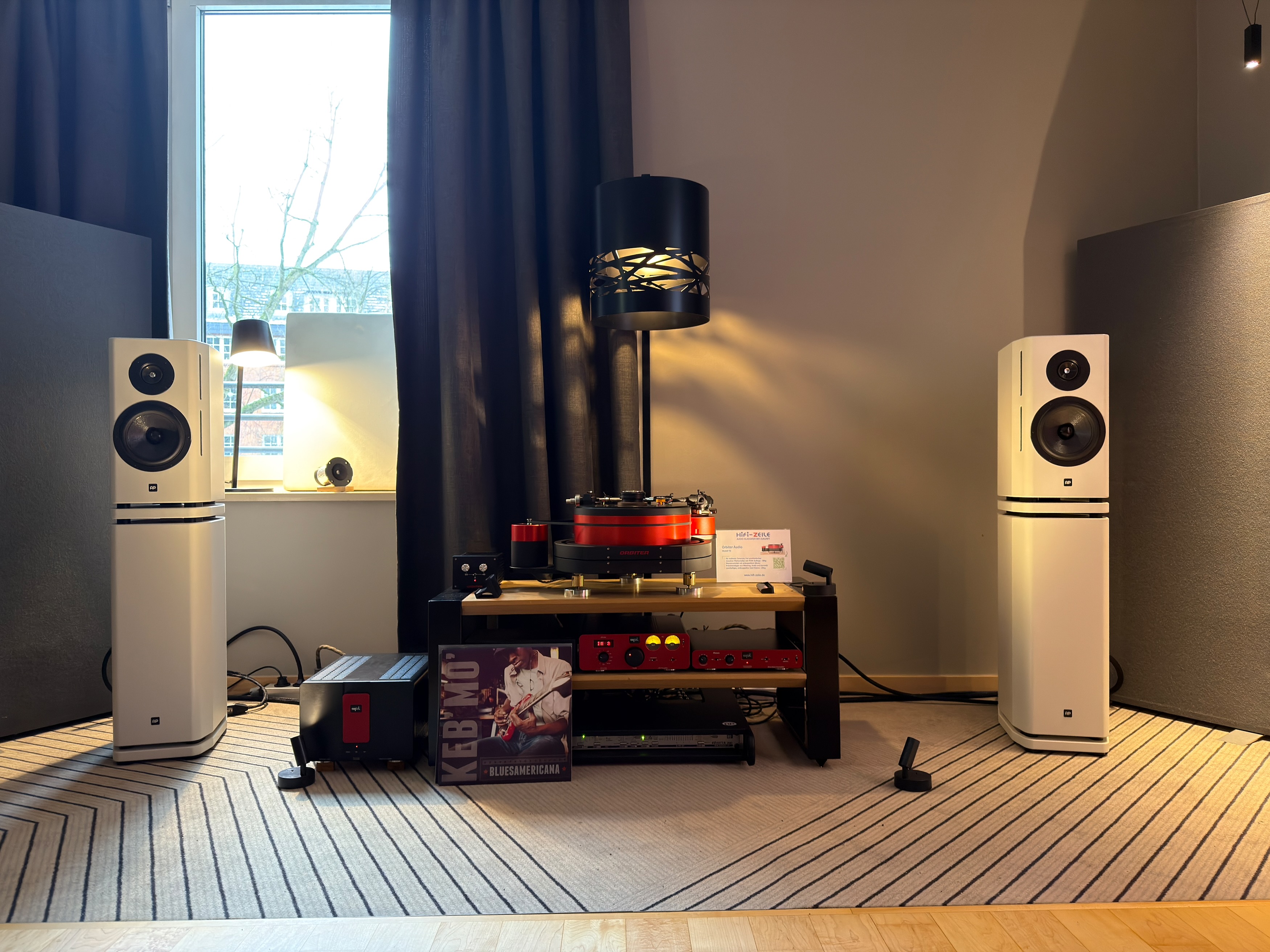 Vorgeführt haben die Dänen mit ihrer eigenen Elektronik der Marken Aavik und Zubehör/Kabel von Ansuz. Im Zentrum des Geschehens standen die Traumhaft schönen Børresen T5 Lautsprecher und der brandneue Subwoofer BM3 in "gefalteter Dipol"-Technik.