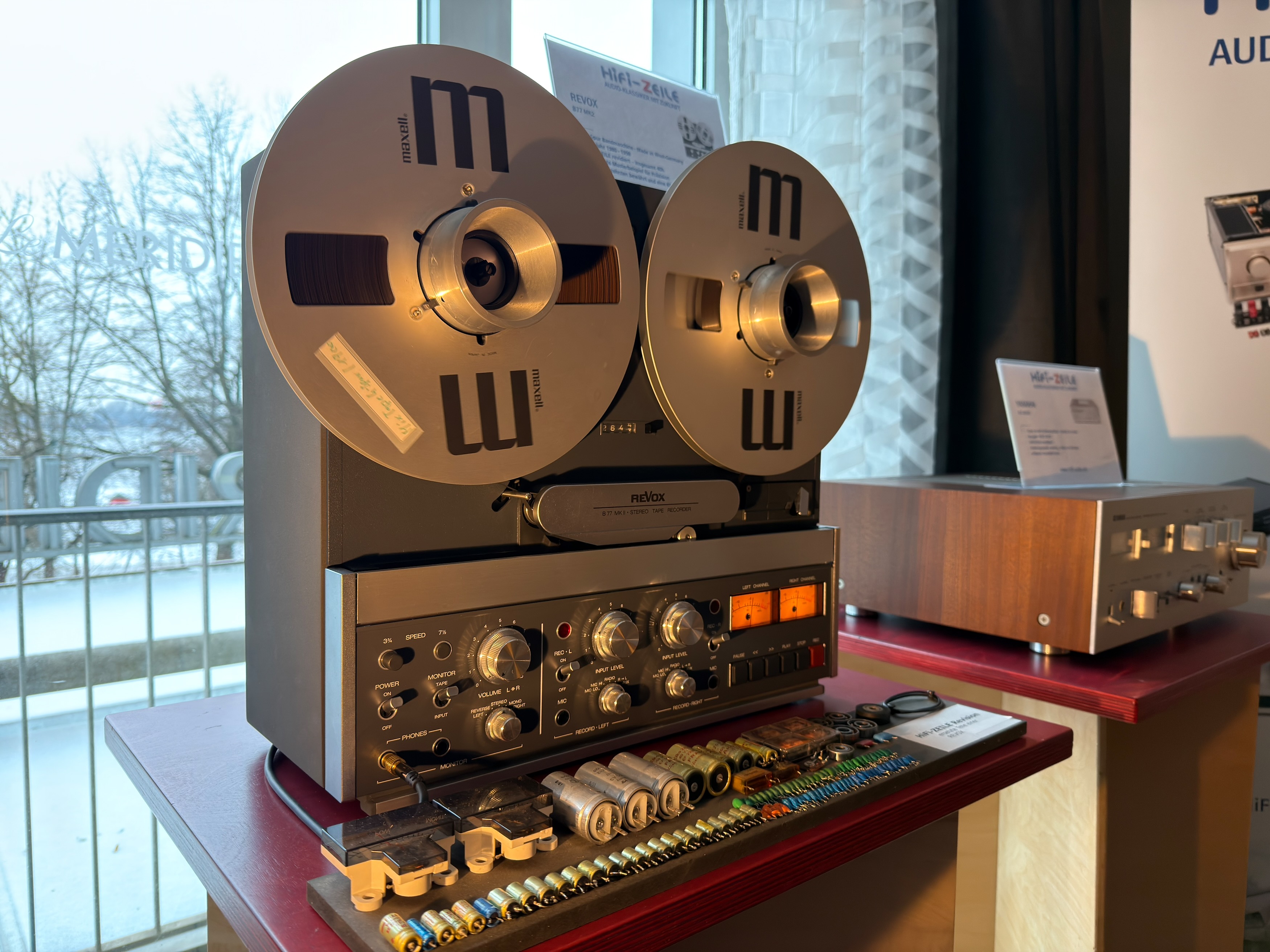 Ein weiterer Trend: Tonbandmaschinen gewinnen wieder deutlich an Beliebtheit. Kein Wunder, bieten sie doch wie Plattenspieler ein musikalisches, optisches und haptisches Gesamterlebnis. Hier ein von der HiFi-Zeile restauriertes Exemplar von Revox. Übrigens war Revox selbst auch auf der Messe vertreten und zeigte unter anderem die brandneue Bandmaschine B77 MK III. Und Revox stellt jetzt auch wieder Compact Kassetten her.
