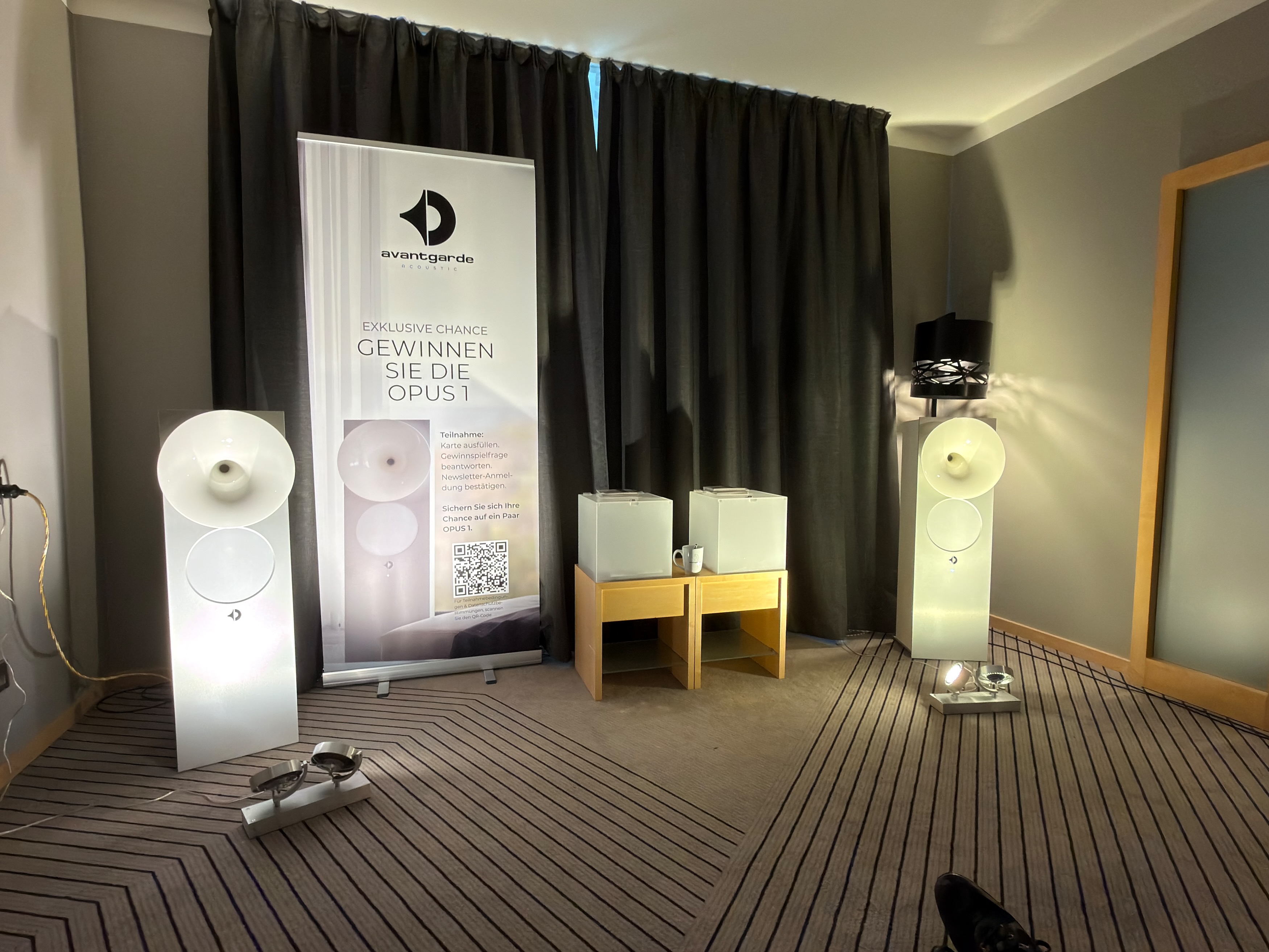 In einem anderen Raum klappte das mit dem neuen kleineren Modell Opus 1 von Avantgade Acoustic deutlich besser. Diese schicken und durchaus noch wohnraumfreundlichen aktiven Hornlautsprecher konnte man sogar gewinnen.