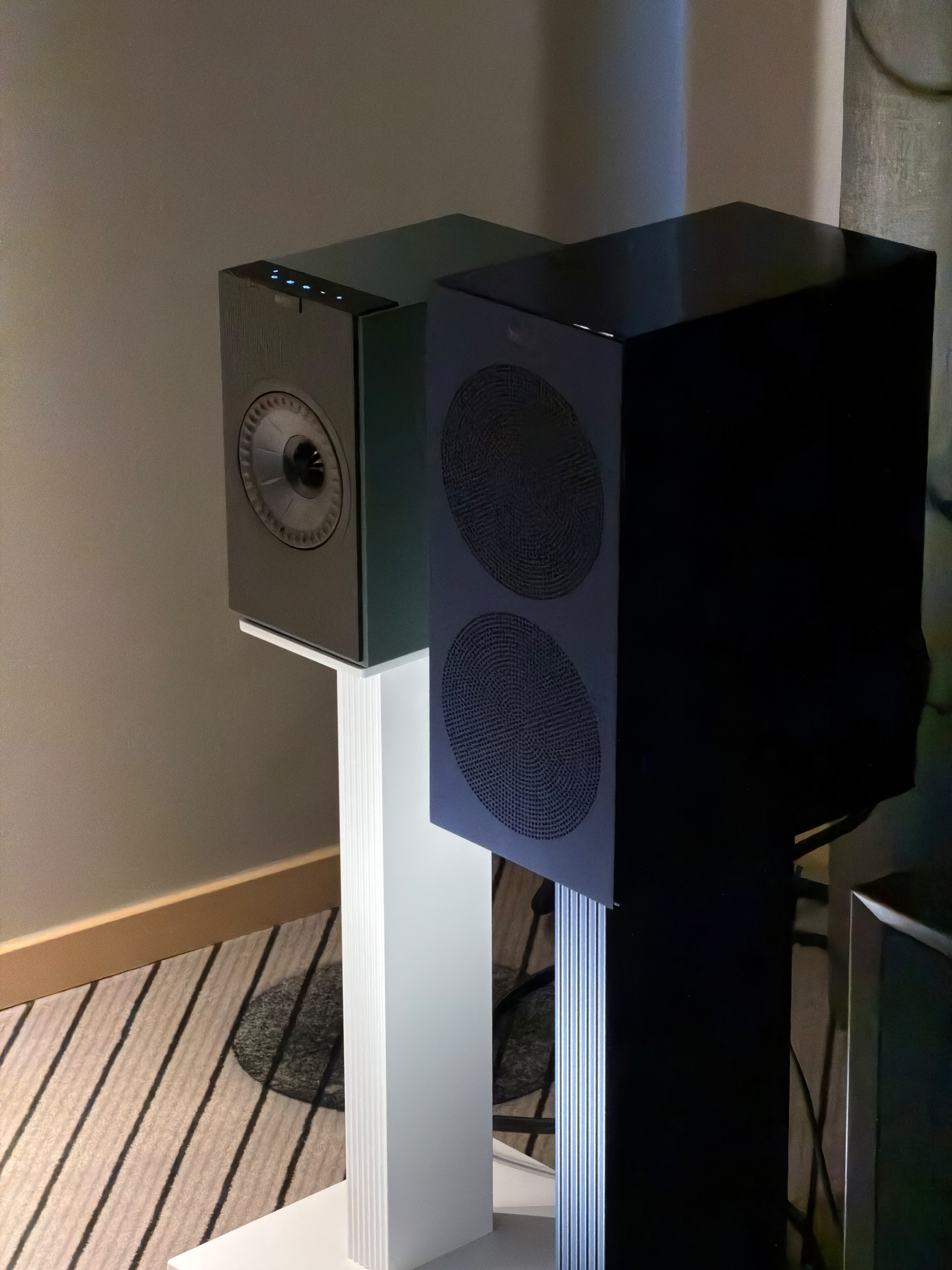 Dass guter Klang nicht ausschließlich über hohe Preise und große Lautsprecher realisierbar ist, konnte man zum Beispiel bei KEF erleben. Hier wurden u. a. die erst kürzlich vorgestellten aktiven Coda W für 899 Eur das Paar gespielt (die kleinen Speaker), die auch für einen Test in REWIND vorgesehen sind.