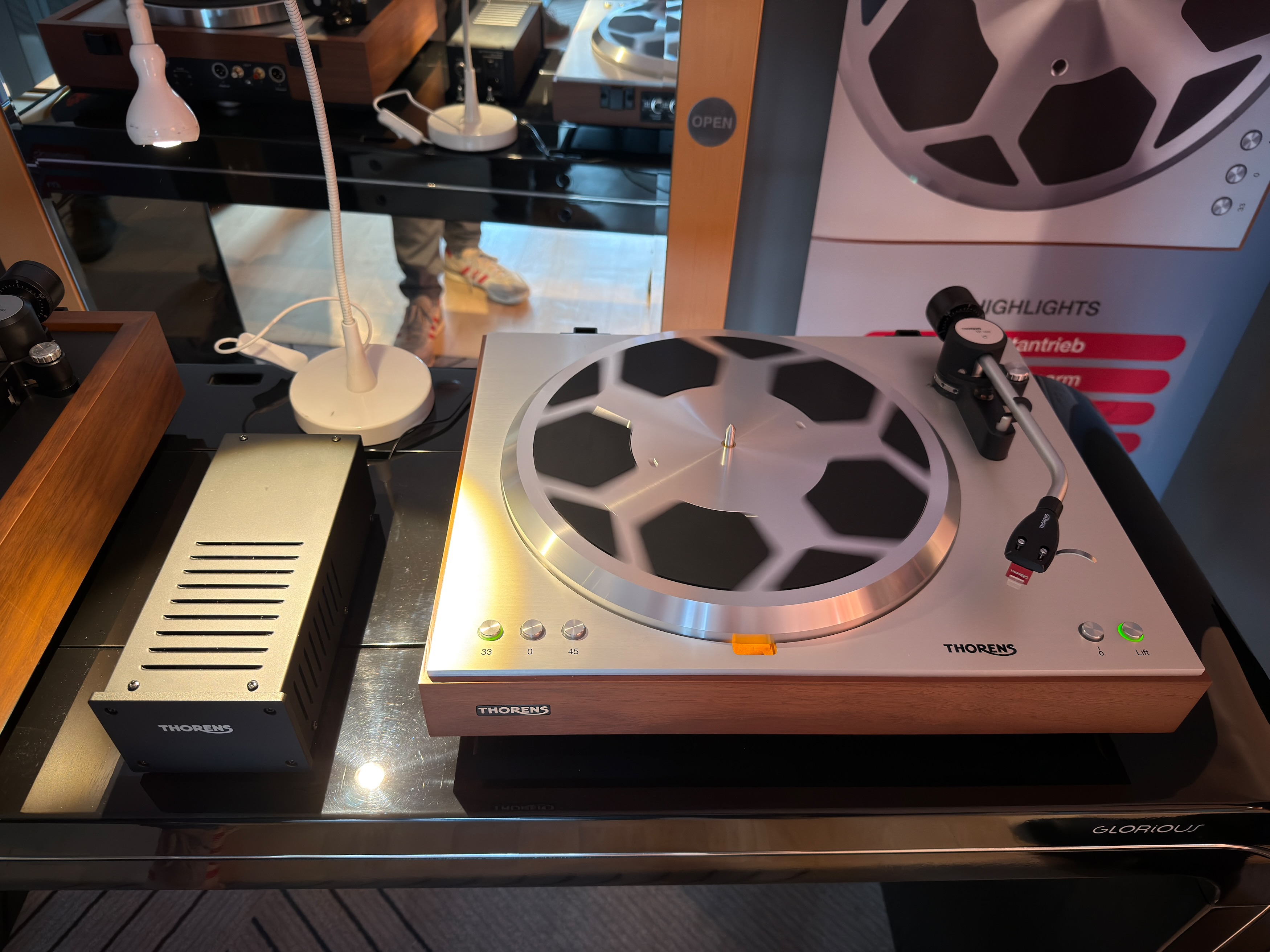 Was Gunter Kürten (ehemals u. a. ELAC) nach seiner Übernahme mit der Marke Thorens erreicht hat, verdient größten Respekt. Unter seiner Leitung lebte die traditonsreiche Plattenspielermarke wieder sensationell auf. Zu verdanken ist dieser Erfolg einer sehr liebevollen Modellpolitik, die immer auch die am meisten geschätzten Klassiker zitiert. Eines der modernsten Konzepte im Hinblick auf die Optik ist der hier gezeigte TD 404 DD. Das "DD" steht für Direct Drive. Und das Plattenteller-Design ist – wer hätte das gedacht – an Spulen von Tonbandmaschinen angelehnt. Ein Plattenspieler von der Sorte, bei der ich fast noch mal schwach werden könnte. Geil!