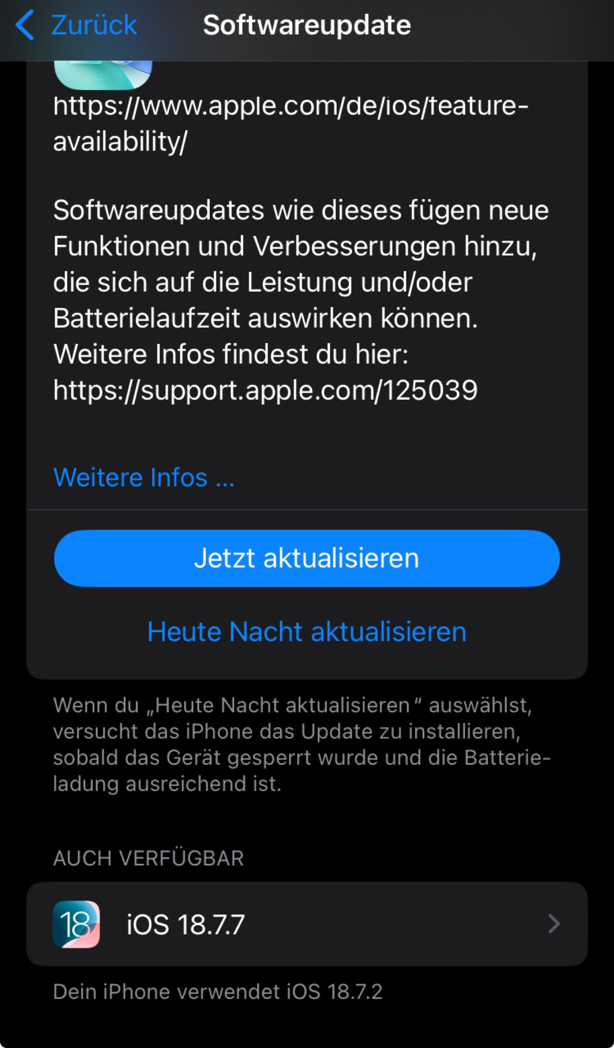 Alte iPhones gepatcht – neuere nur unter iOS 26Während Apple Lob dafür erhielt, selbst für zehn Jahre alte iPhones noch Aktualisierungen anzubieten, gab es in einem anderen Aspekt viel Schelte. 18.7.7 bietet man nämlich ganz bewusst solchen Nutzern nicht an, die theoretisch auf iOS 26 umsteigen könnten, den Schritt aber nicht gehen wollten. Somit ist ein iPhone XR des Jahres 2018 gegen die schwere Sicherheitslücke geschützt, ein iPhone 11 von 2019 unter iOS 18 hingegen nicht. Die Produktpolitik, Nutzer stets auf die jeweils aktuelle Hauptversion bewegen zu wollen, sorgte damit für eine ziemlich kritikwürdige Situation: Patches zurückzuhalten, obwohl es diese gäbe.
